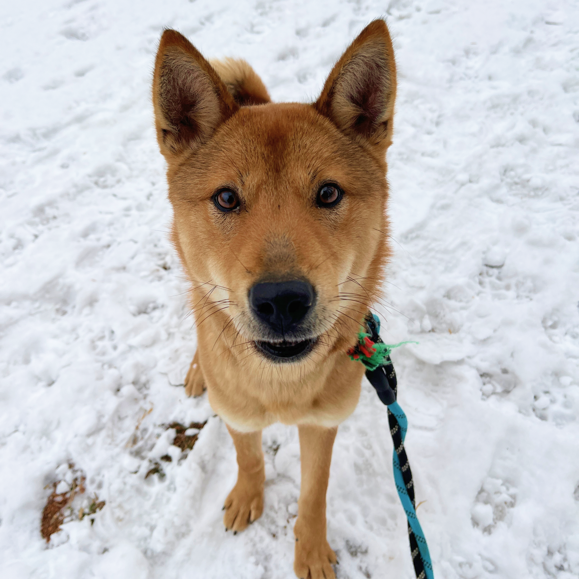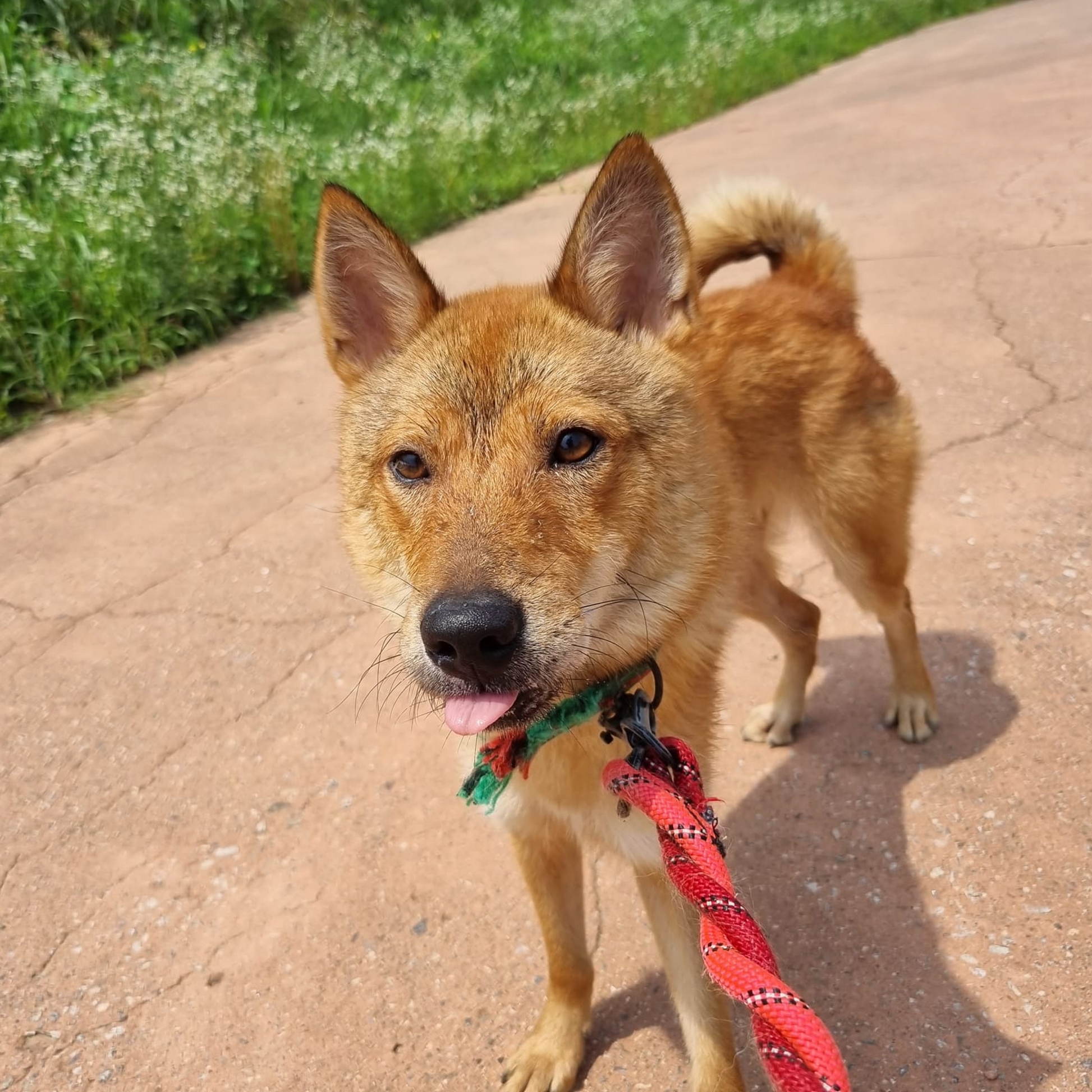 Acorn ist ein junger, 13 kg schwerer männlicher Jindo-Mix, der 2022 ins Tierheim kam. Dieser hübsche, lebensfrohe Kerl hat zwei große Lieben im Leben - kuscheln und Abenteuer erleben! Besonders gerne geht er diesen Sommer spazieren, taucht im Fluss in der Nähe des Tierheims ein und planscht nach Herzenslust! Nach einem kräftigen Lauf und einem Schwumm möchte er nichts mehr, als von seinem Menschen ausgiebig gestreichelt und geliebt zu werden. Es ist so niedlich, wenn er sich anschmiegt und sich herumrollt, vor Liebe platzt (obwohl wir manchmal wünschen, er würde die Reihenfolge zwischen Schwimmen und Kuscheln ändern). Er setzt sich auch gerne für Leckerlis hin, was darauf hindeutet, dass er sich gut trainieren lässt!