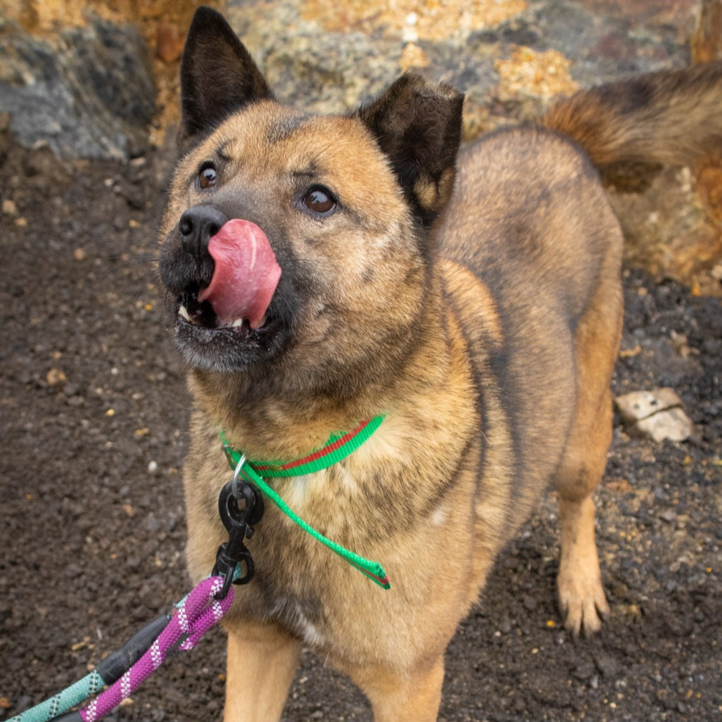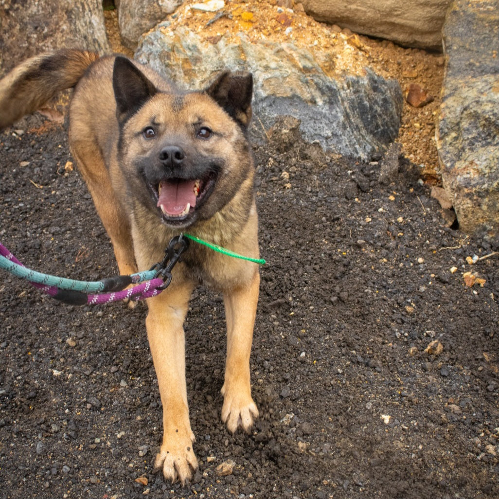 Aki ist eine männliche Jindo-/Schäferhund-Mischung. Er kam als Welpe ins Tierheim und ist seitdem hier aufgewachsen, aber er ist definitiv immer noch sehr energisch und wird auf 2017 geschätzt. Er ist so optimistisch im Leben und liebt seine Zeit draußen bei Spaziergängen mit unseren Freiwilligen! Früher war er ziemlich schüchtern, aber jetzt liebt er die Aufmerksamkeit, die ihm die Leute schenken! Er bevorzugt seine Leckerlis und ist leckerli-motiviert und aufmerksam auf die Handlungen und Worte der Menschen, daher wäre er leicht zu trainieren. Aki hat ein ziemlich einzigartiges Aussehen mit einem abgebrochenen Ohr! Wir wissen nicht, wie er es bekommen hat, aber es trägt zu seinem Charme und seiner einzigartigen Persönlichkeit bei!