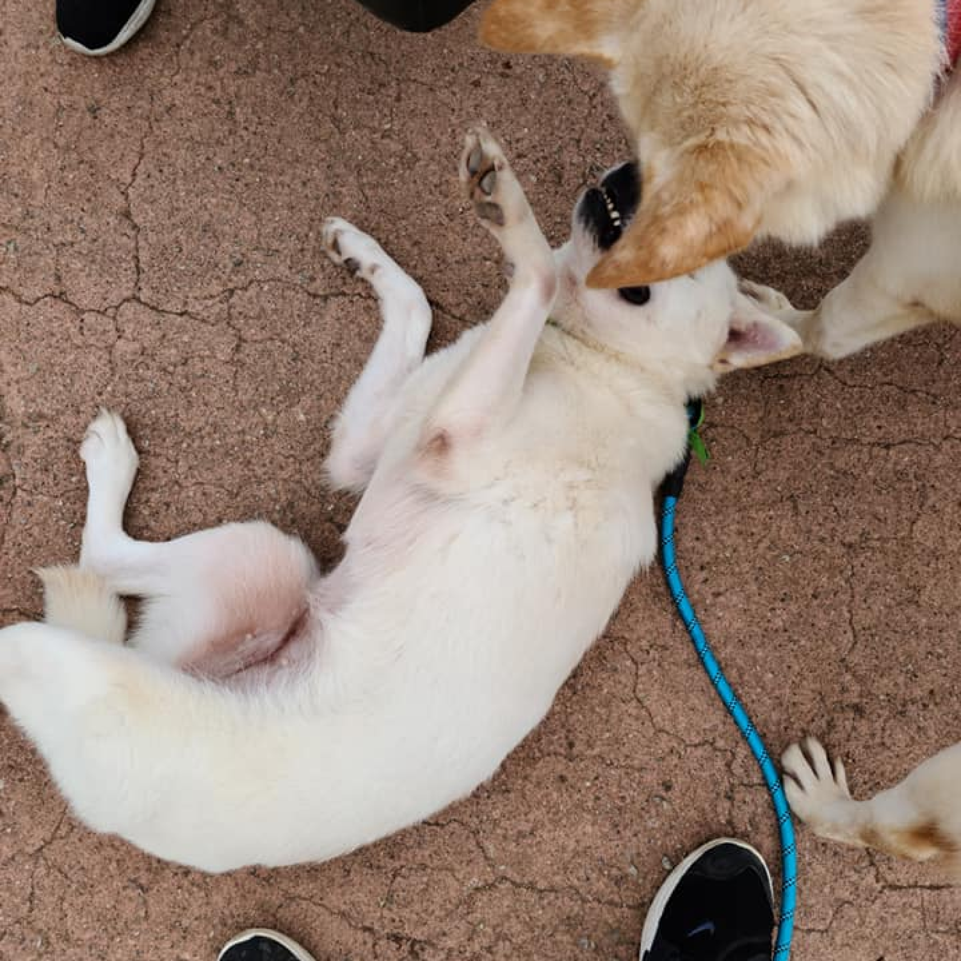 Blossom ist eine 15 kg schwere Jindo-Mix-Hündin, die 2020 gemeinsam mit ihren beiden Schwestern, Buttercup und Bubbles, als Welpe in unser Tierheim aufgenommen wurde! Blossom ist Teil der PowerPuff Pups (Girls) und hat die gleiche liebenswerte Persönlichkeit wie ihr Cartoon-Gegenstück! Blossom liebt es, gekuschelt und gestreichelt zu werden und legt sich gerne hin, um ihren Bauch für Streicheleinheiten zu zeigen! Sie ist selbstbewusst bei ihren Spaziergängen und ist sogar bereit, in den Fluss zu springen, um ihre Pfoten abzukühlen! Blossom hat auch eine hübsche rosa Nase, die sich im Laufe der Zeit langsam rosa gefärbt hat. Das macht sie etwas geröstet und sehr niedlich.