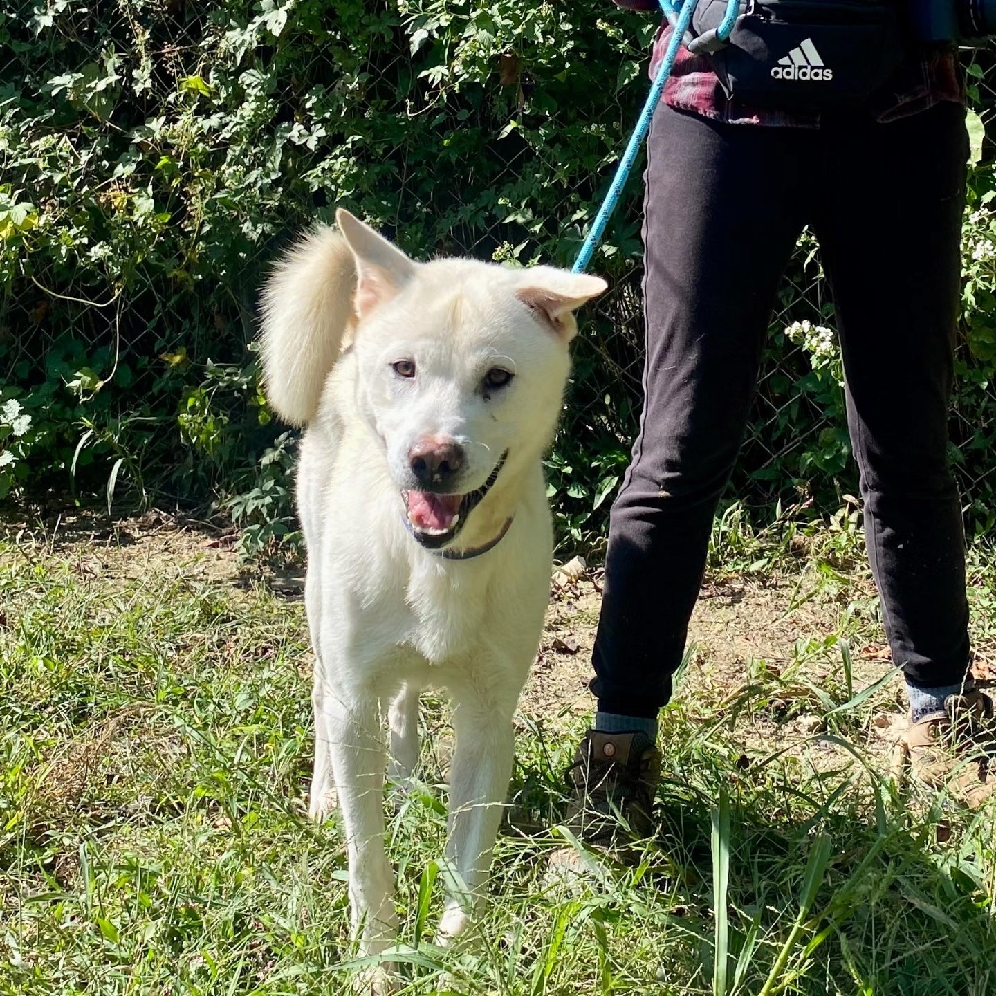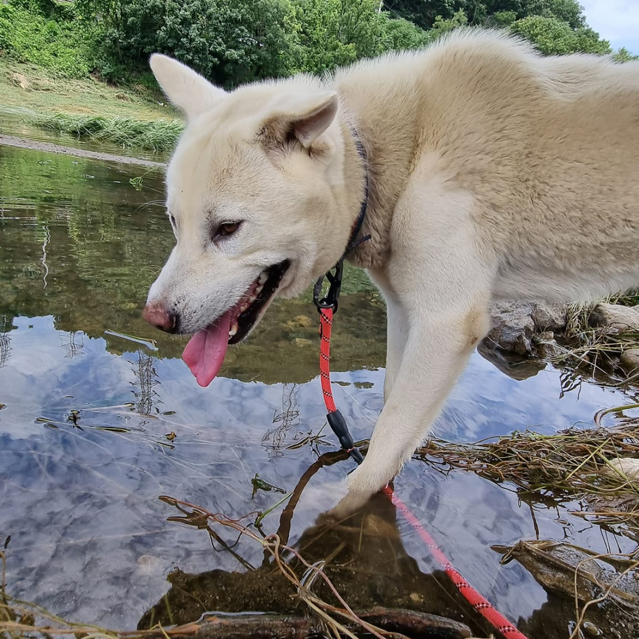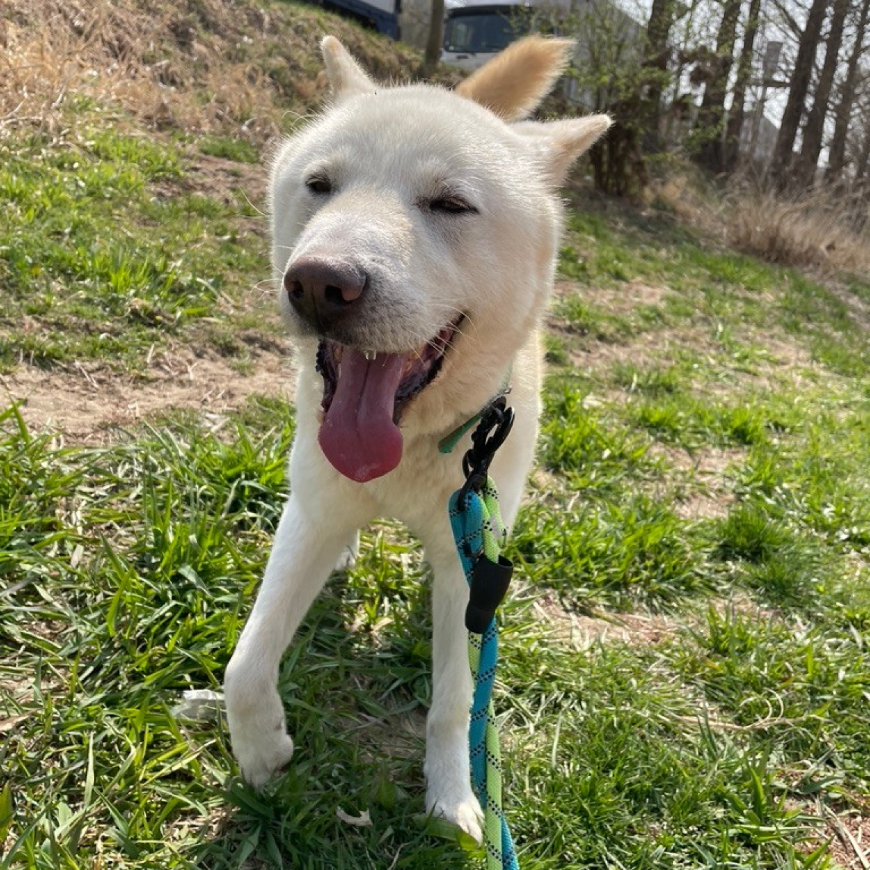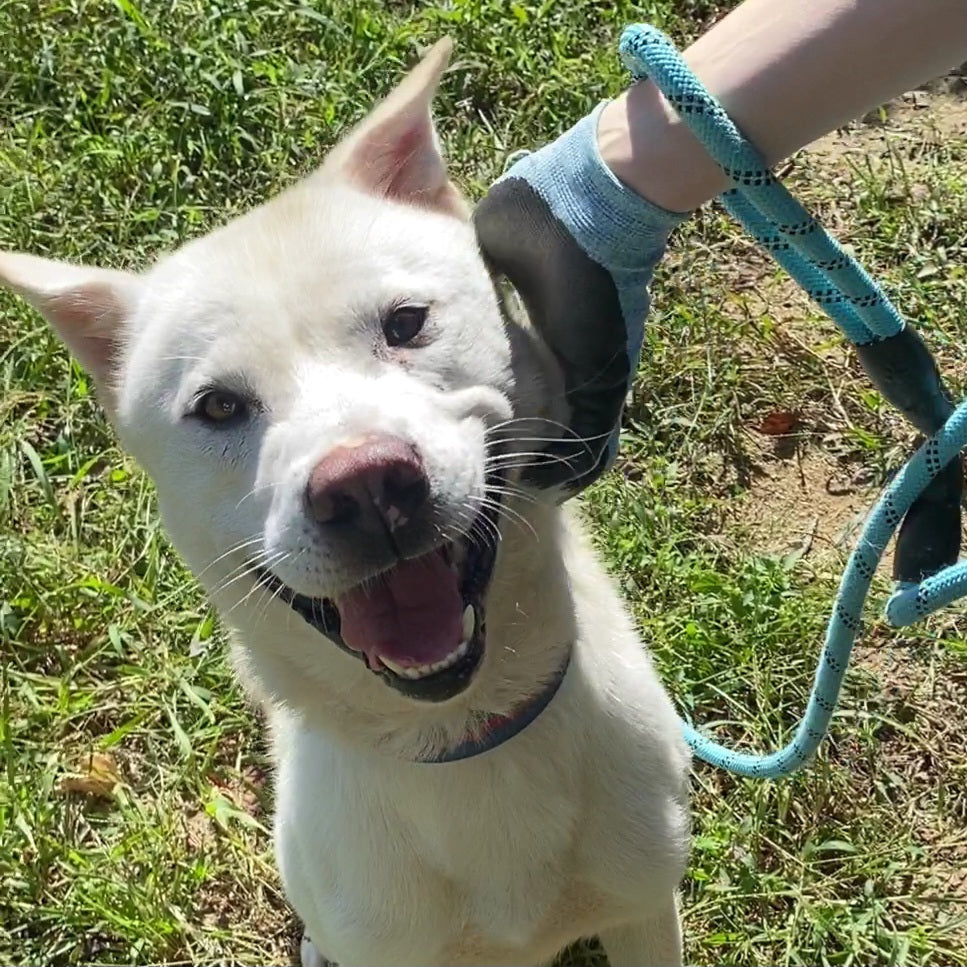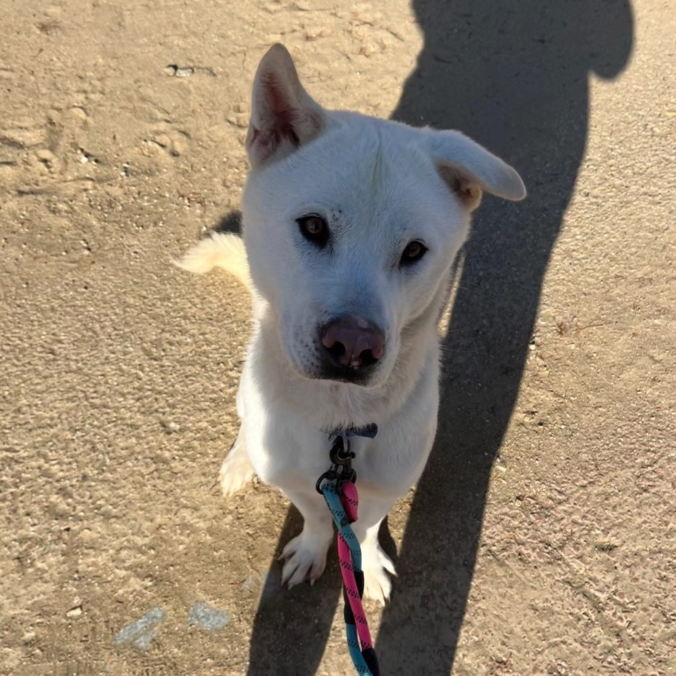 Hier ist Boyd! Boyd ist ein gutaussehender und schmaler Jindo-Rüde, der von jugendlichem Enthusiasmus nur so strotzt! Er kam letztes Jahr ins Tierheim und liebt es, Zeit mit dem Personal und den Freiwilligen zu verbringen. Er ist sehr motiviert durch Futter und du wirst der Mittelpunkt seiner Welt sein, wenn du leckere Leckerlis in der Hand hast! Dieser schlaue Junge wird aufgeregt mit einem unschlüssig herumflatternden Ohr für sein Leckerli brav Sitz machen. Selbst ohne Futter liebt Boyd Streicheleinheiten und Kuscheln und ist einfach glücklich, am Leben zu sein und Aufmerksamkeit von Menschen zu bekommen! Da er manchmal etwas zu enthusiastisch in der Nähe anderer Hunde ist, lebt er derzeit in seinem eigenen Zwinger ohne Mitbewohner und zieht während der Spaziergänge in Richtung anderer Hunde. Da er jedoch so motiviert durch Futter ist, glauben wir, dass er mit etwas Training gut darauf fokussiert werden kann, bei Spaziergängen auf seinen Menschen zu achten.