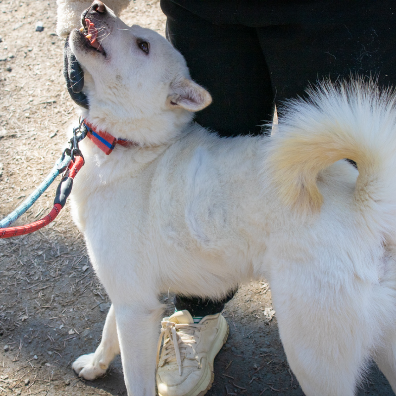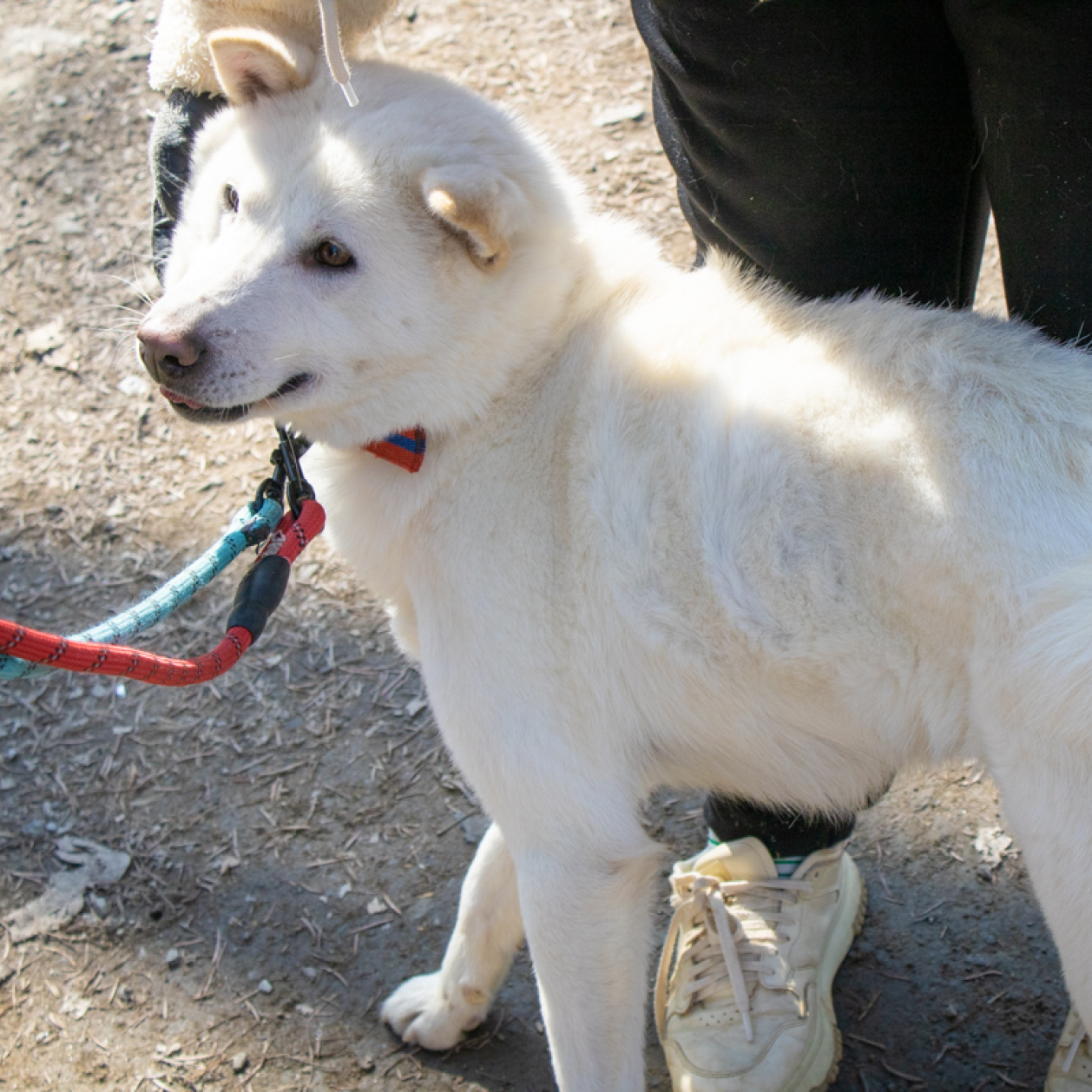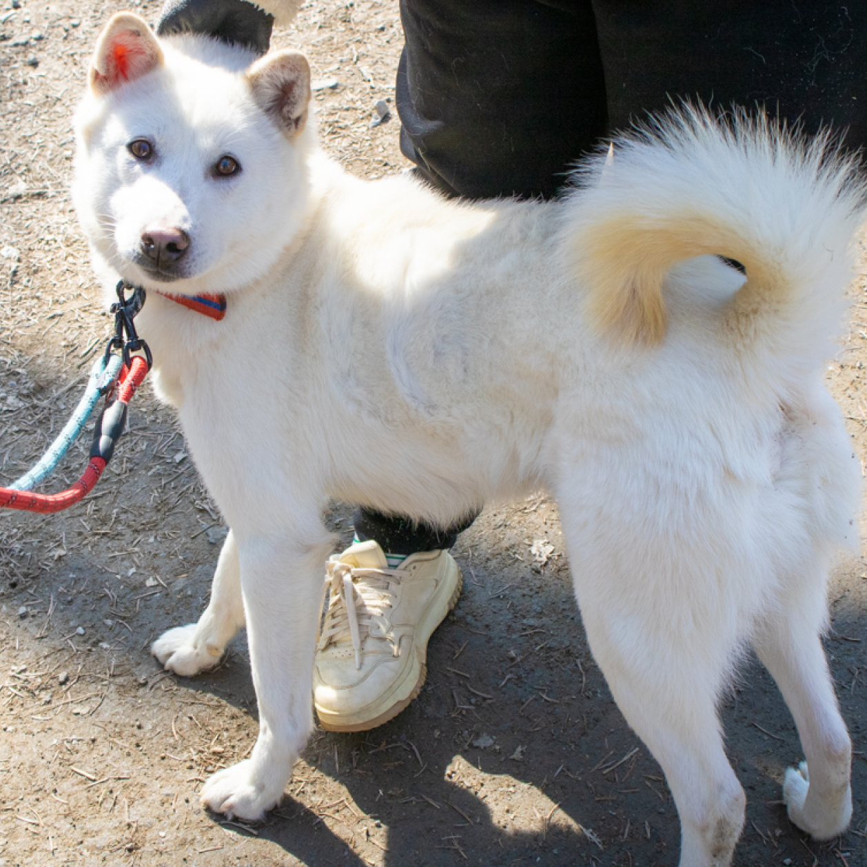 Charlie ist ein männlicher Jindo mit einem beeindruckenden weißen Fell, der etwa 22 kg wiegt. Er kam 2021 ins Tierheim, nachdem er alleine und ohne Mikrochip herumirrend gefunden wurde. Trotz seiner geheimnisvollen Vergangenheit hat sich Charlie als ein hübscher und sanfter Hund erwiesen. Immer wenn die Kamera hervorgeholt wird, kann er nicht anders, als zu lächeln und zu posieren, als ob er wüsste, wie gut er aussieht! Charlie ist sehr freundlich und genießt die Zuwendung und Leckerlis von unseren engagierten Freiwilligen nach einem erfüllten Spaziergang.