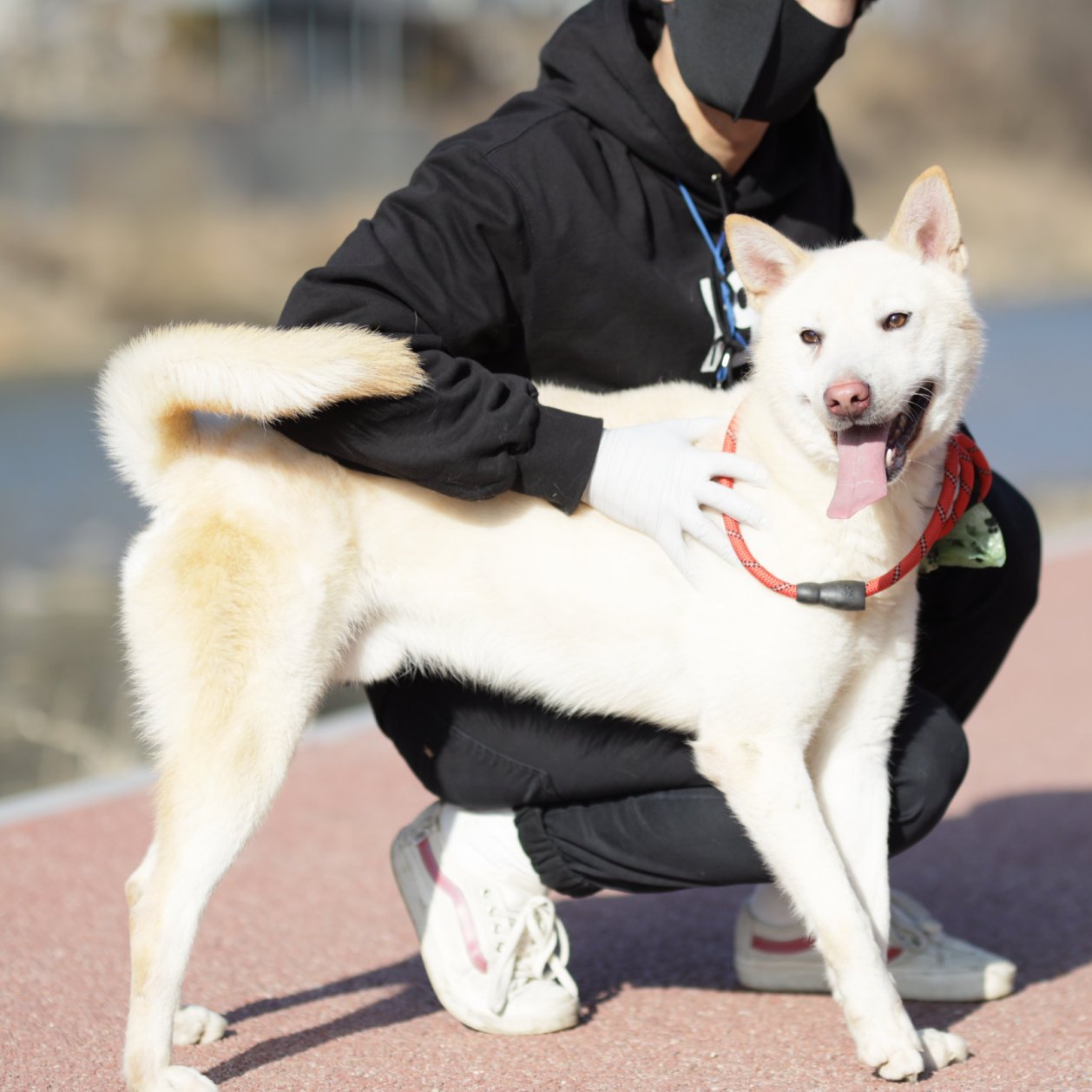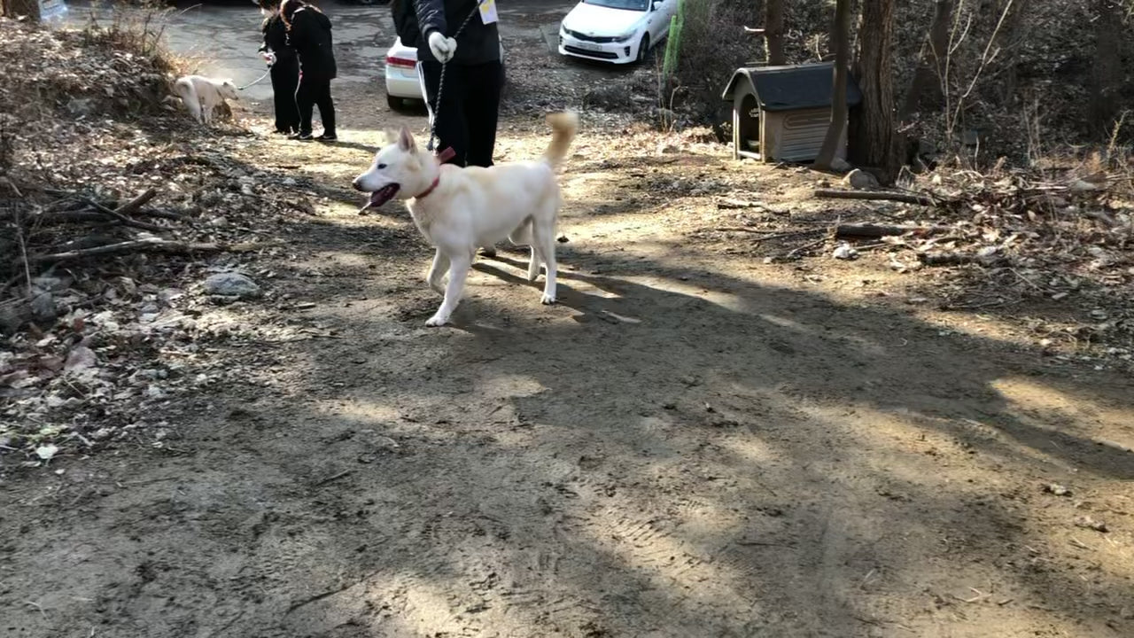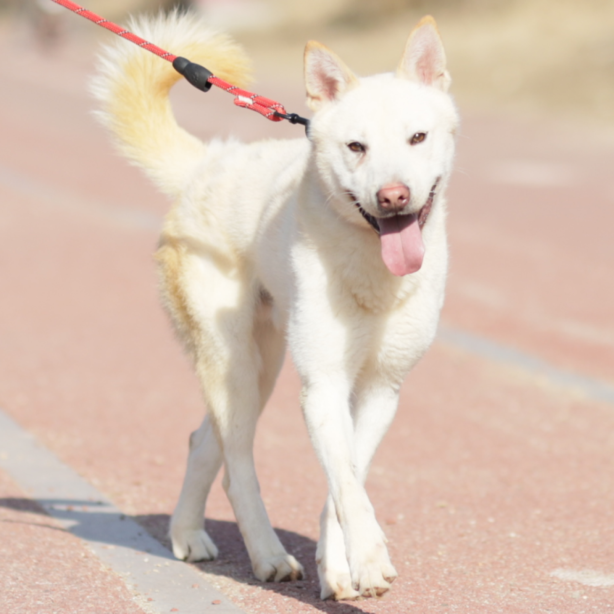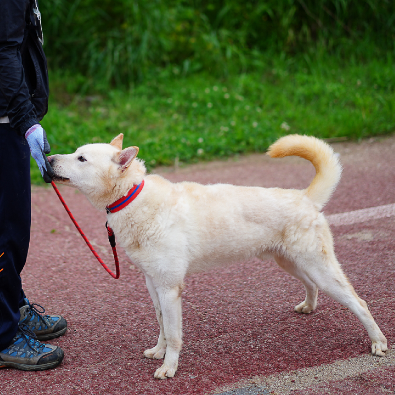 "Cory - oder auch bekannt als Springer auf Koreanisch - liebt es zu springen. Er tut es jedes Mal, wenn seine Lieblingsmenschen an seinem Zwinger vorbeigehen. Doch sobald du ihn nach draußen bringst und mit ihm spazieren gehst, beruhigt er sich und konzentriert sich aufs Schnüffeln. Er liebt kurze Läufe und beachtet andere Hunde meist kaum. Etwas, das Cory auch liebt, sind Snacks, einschließlich Ente, Huhn und allem anderen. Mögliche Besitzer sollten sich nur bewusst sein, dass er seinen Kopf in deine Snacktasche stecken und alles darin verschlingen könnte."