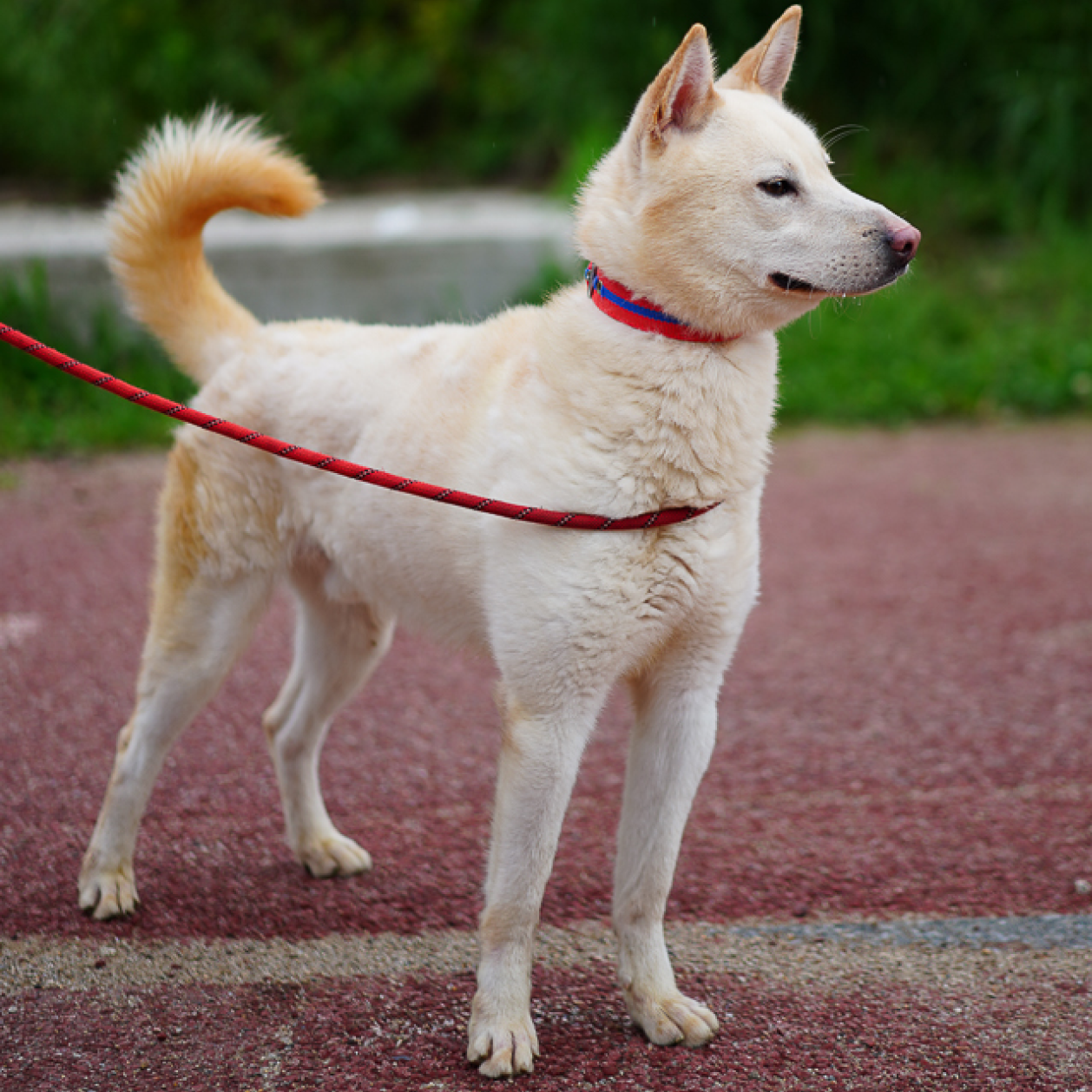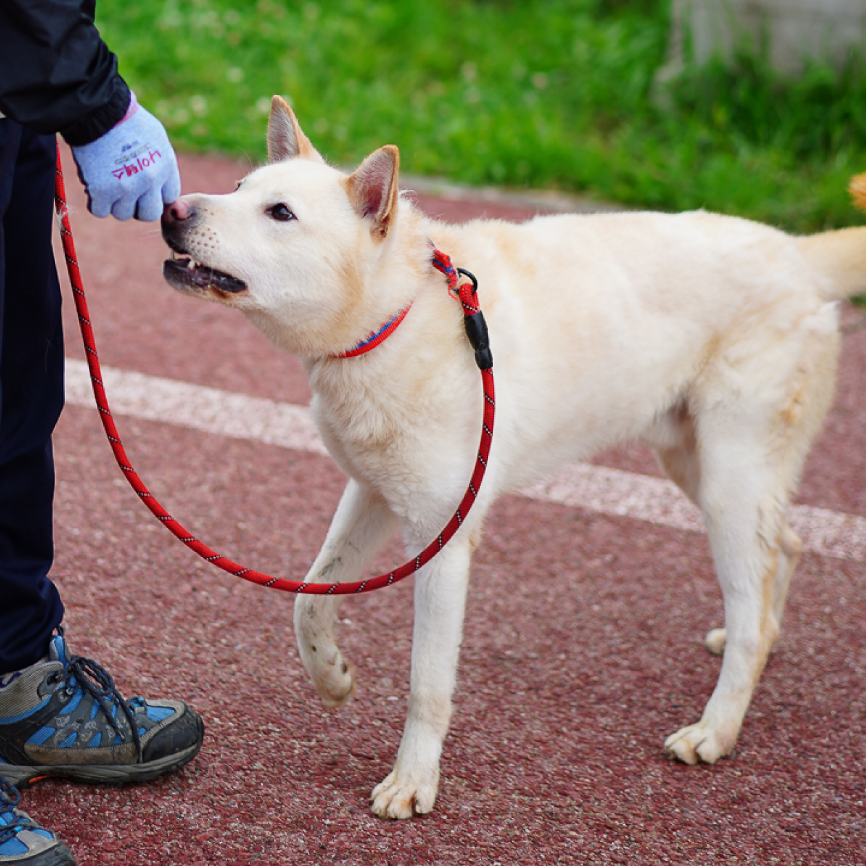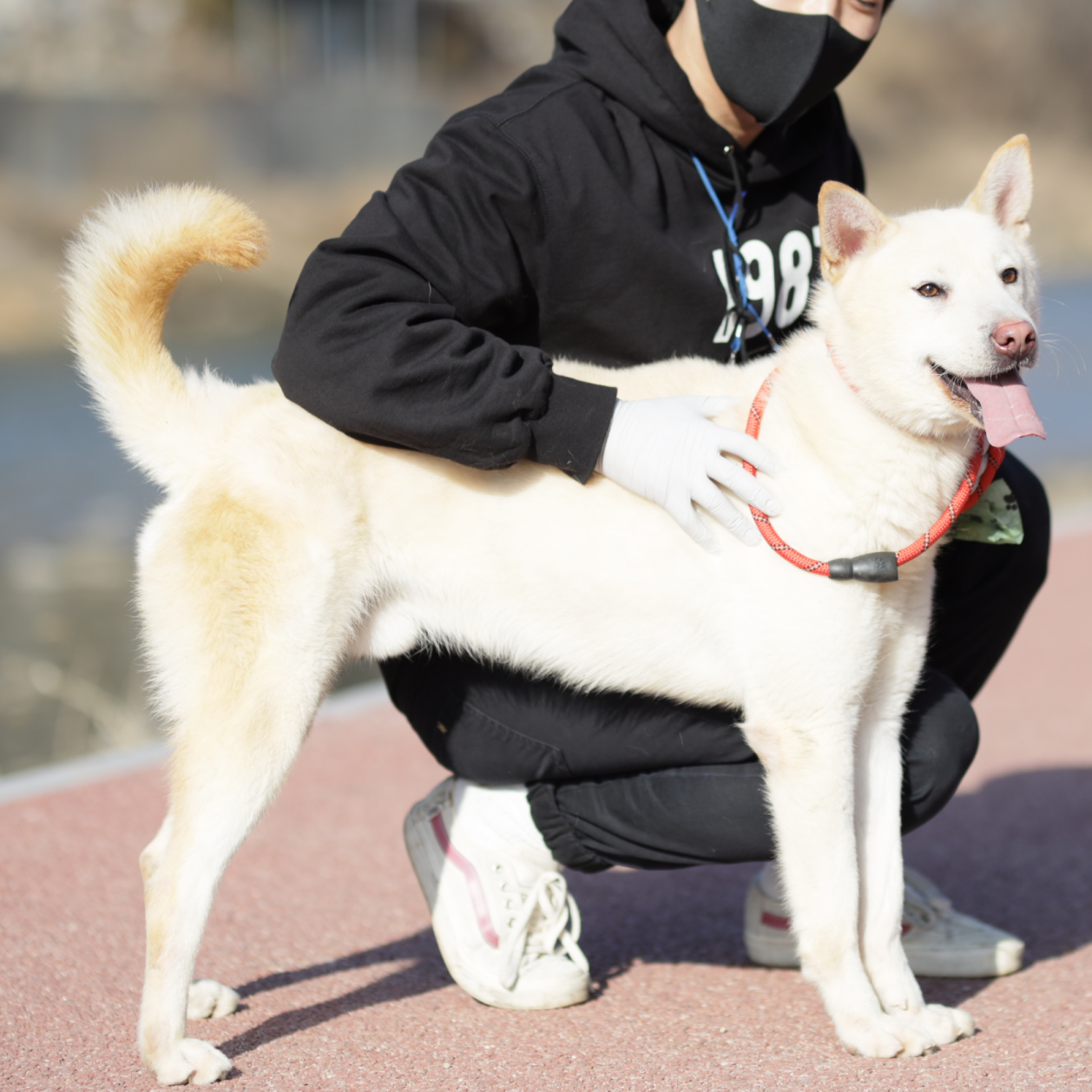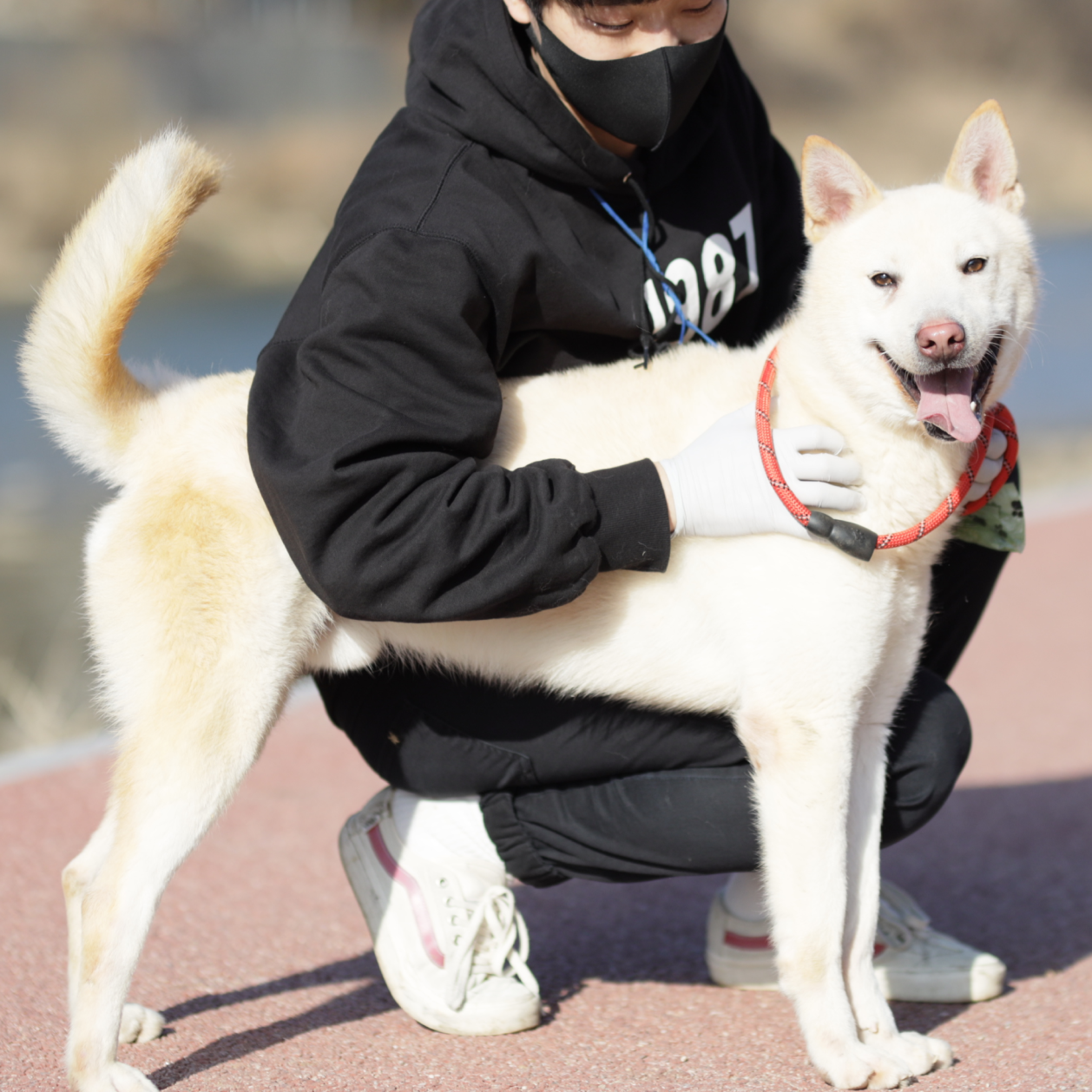 "Cory - oder auch bekannt als Springer auf Koreanisch - liebt es zu springen. Er tut es jedes Mal, wenn seine Lieblingsmenschen an seinem Zwinger vorbeigehen. Doch sobald du ihn nach draußen bringst und mit ihm spazieren gehst, beruhigt er sich und konzentriert sich aufs Schnüffeln. Er liebt kurze Läufe und beachtet andere Hunde meist kaum. Etwas, das Cory auch liebt, sind Snacks, einschließlich Ente, Huhn und allem anderen. Mögliche Besitzer sollten sich nur bewusst sein, dass er seinen Kopf in deine Snacktasche stecken und alles darin verschlingen könnte."