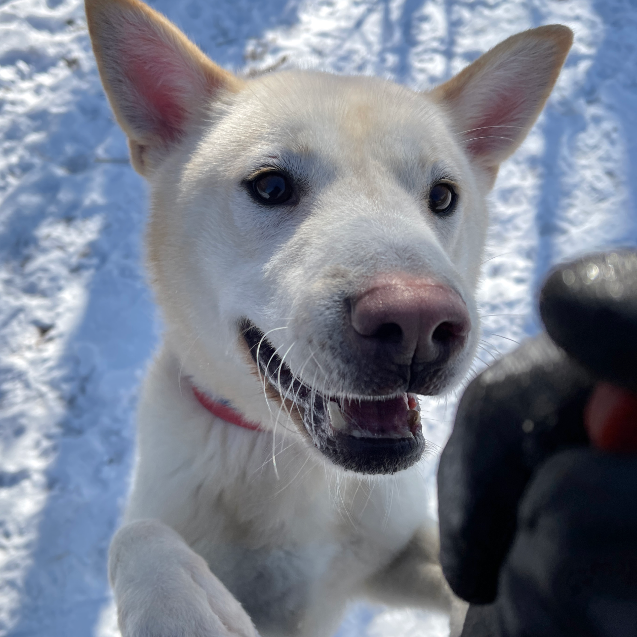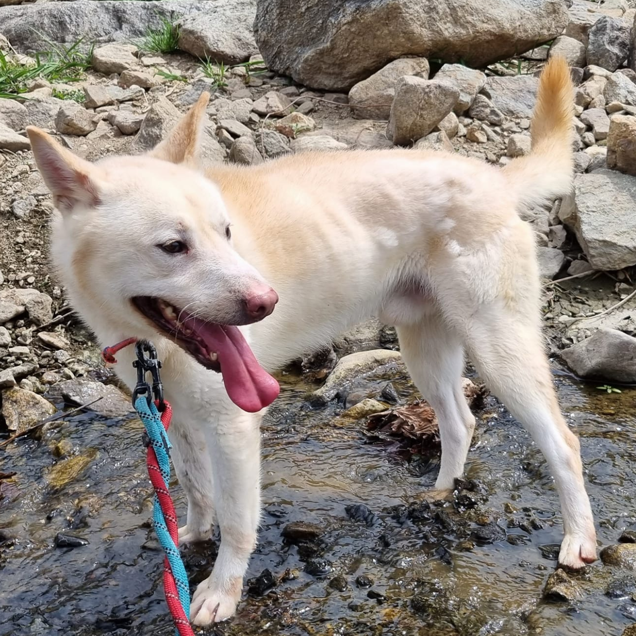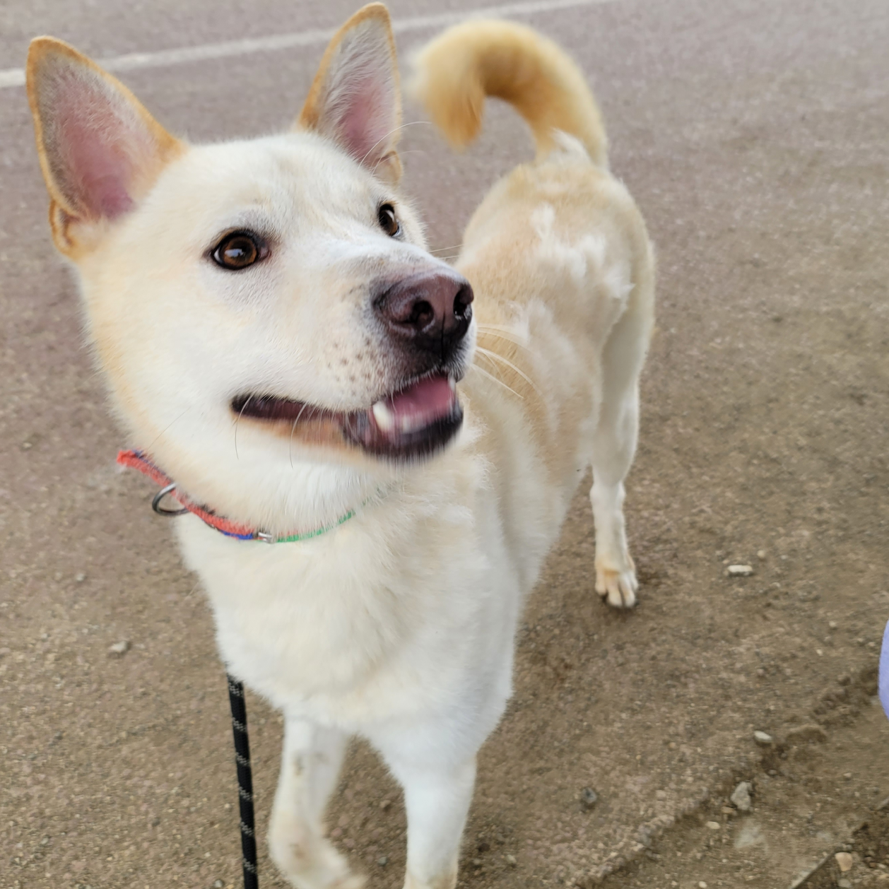 Cory ist ein männlicher Jindo-Mix, der seit Juli 2019 in unserem Tierheim ist. Er ist einer unserer langjährigen Bewohner, der bisher kein Zuhause gefunden hat. Mit seinem leicht getoasteten Fell, seinem ansteckenden Lächeln und seiner süßen rosa Nase strahlt Cory Selbstbewusstsein und Charme aus. Als vornehmer Herr interessiert er sich nur für die feinsten Streicheleinheiten und Leckerlis von Menschen und wird von unseren ehrenamtlichen Helfern nach Streicheleinheiten verlangen. Eigentlich trägt Cory den Spitznamen "Springer", weil er oft in die Luft springt, wenn Menschen an seinem Zwinger vorbeigehen! Alle vier Pfoten verlassen den Boden und es sieht aus, als ob er schweben würde!