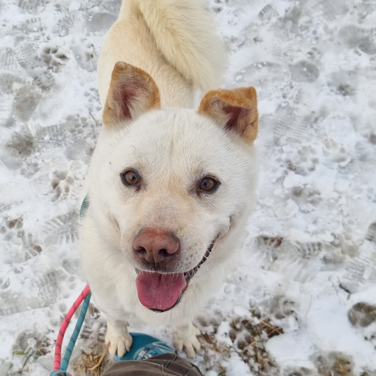 Diamond ist ein riesiger, energetischer und fröhlicher männlicher Jindo-Mix! Er ist ein großer Kerl mit einem noch größeren Herzen. Trotz seiner Hyperaktivität, Stärke und der Tendenz, an der Leine zu ziehen, wird er zu einem der süßesten Jungs, sobald er seine Energie abgebaut hat. Er ist ein riesiger Schmusekater und liebt es, sich an dich zu lehnen, um Zuneigung und Trost zu suchen. Diamond ist wirklich ein Rohdiamant! Mit etwas Training und Anleitung kann er der beste Freund fürs Leben für jeden werden.