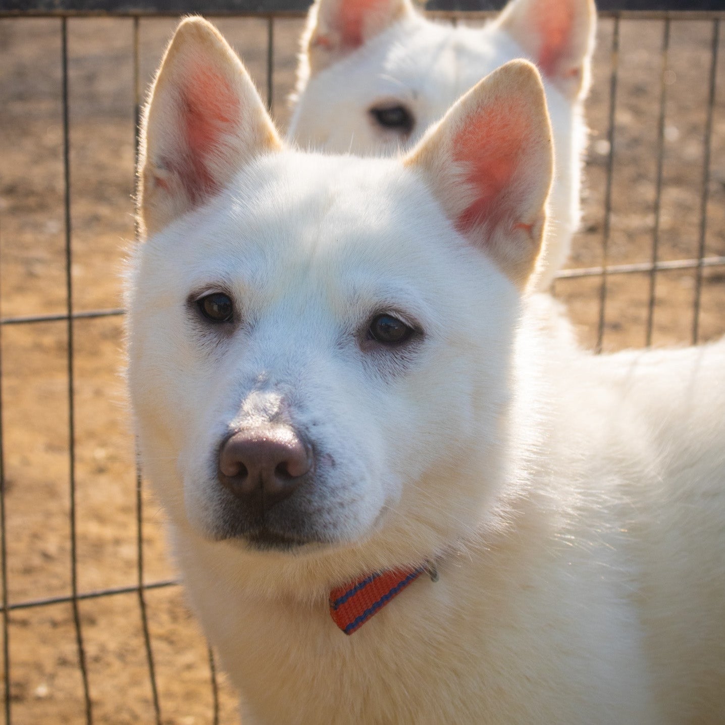 Alle zusammen, trefft Ella! Ella ist ein mittelgroßes Jindo-Mix-Mädchen, das im Juli 2023 im Alter von etwa 5 Monaten zusammen mit ihrer Schwester Della ins Tierheim kam. Diese beiden Lieblinge sind hinter den Wänden des Tierheimpens aufgewachsen und hatten leider nicht viele Gelegenheiten, die Welt außerhalb ihres Zwingers zu erkunden. Daher lernen sie immer noch, in unbekannten Gebieten ihre Wachsamkeit abzulegen. Wir haben jedoch gesehen, dass Ella und Della sich nach nur einem kurzen Ausflug enorm geöffnet haben, und wir können erkennen, dass sie wirklich liebenswerte Persönlichkeiten haben, die gerade unter der Oberfläche schlummern! Sie entspannen sich, wenn wir sie halten, und belohnen uns manchmal sogar mit kleinen Küsschen und Liebkosungen, um zu zeigen, dass sie ihr Bestes tun, um selbstbewusst zu wachsen und ihre Liebe zu zeigen.