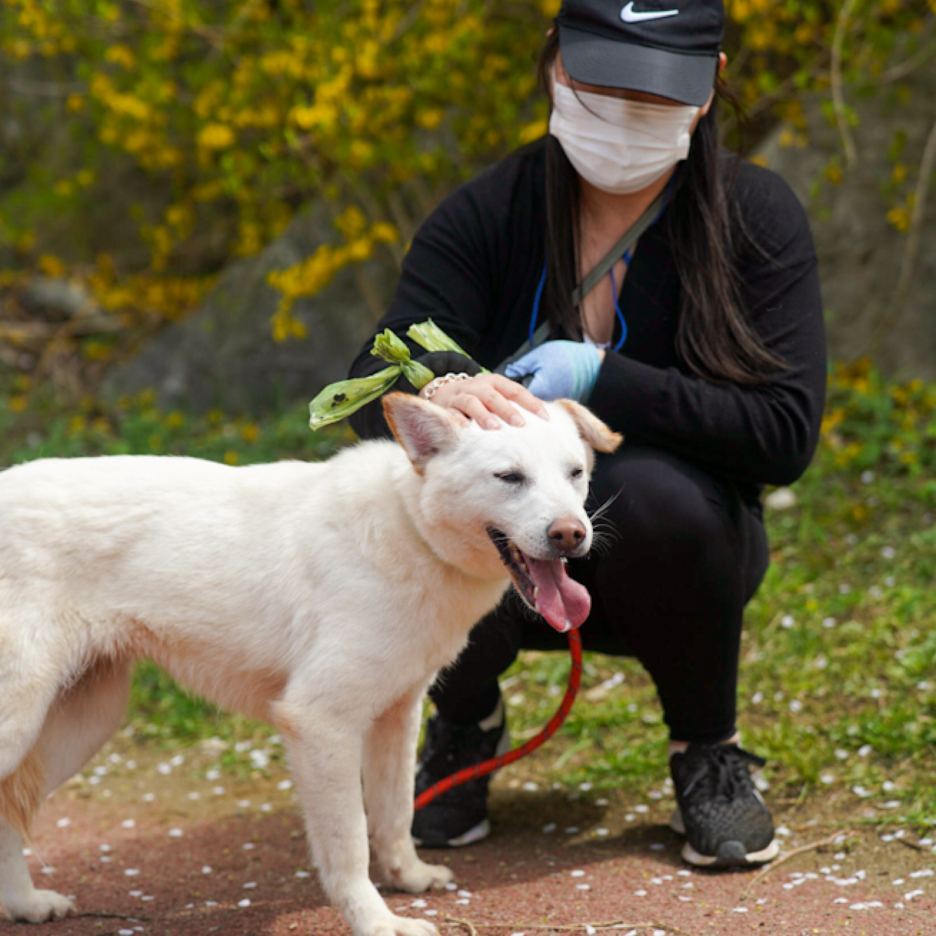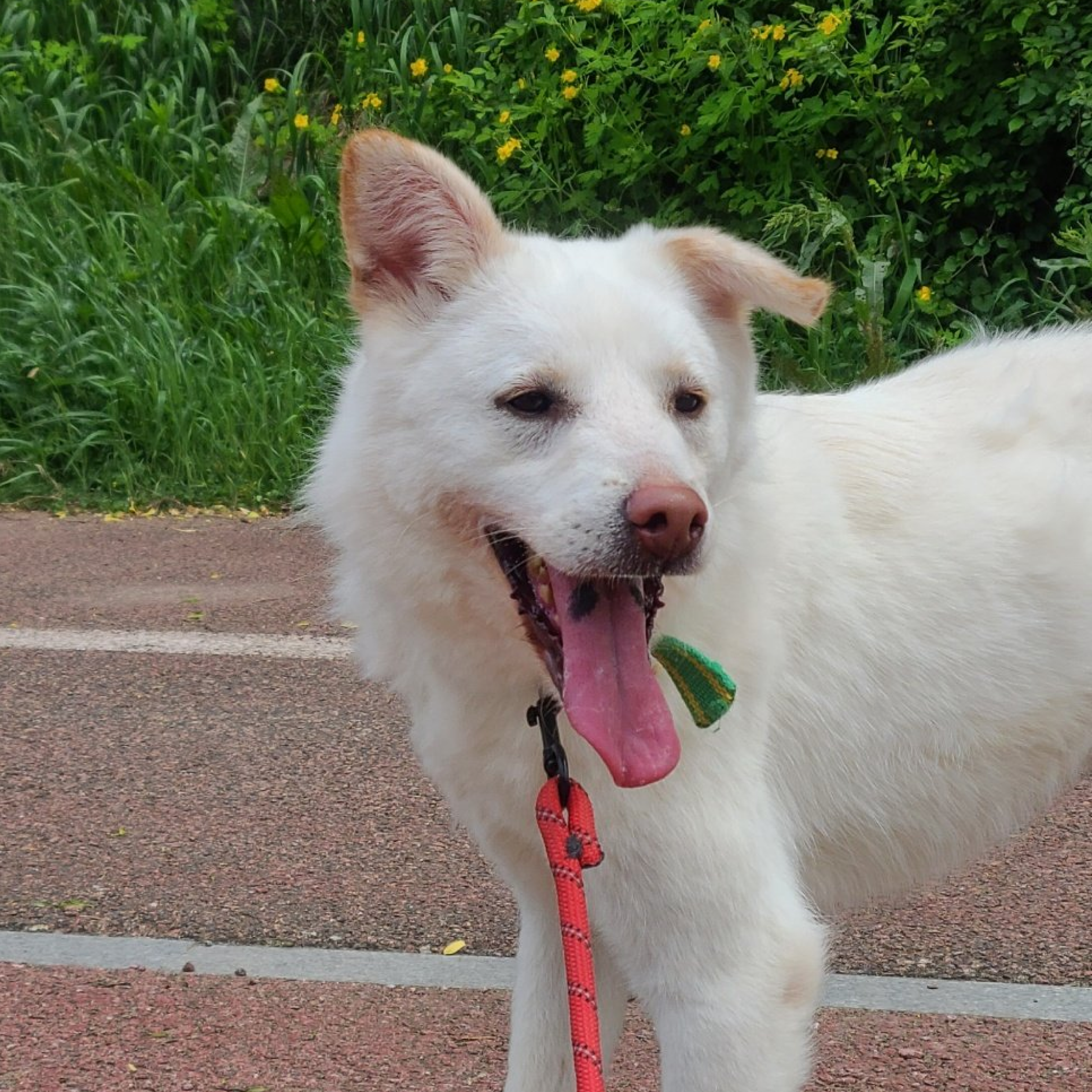 Everypawdy, trefft Fizz (oder 미리내 auf Koreanisch)! Fizz ist ein 15 kg schwerer Mischlingsrüde, der Ende Januar 2020 im Alter von nur 2 Monaten in unser Tierheim aufgenommen wurde. Er wurde zusammen mit seinen 5 Geschwistern in einem Karton am Straßenrand aufgefunden. Fizz ist ein äußerst schüchterner Junge, der sein ganzes Leben im Tierheim verbracht hat und daher wenig Kontakt zur Außenwelt hatte. Dadurch ist Fizz sehr vorsichtig und zurückhaltend, wenn es darum geht, mit unseren Freiwilligen spazieren zu gehen. Er geht immer noch gerne spazieren, solange er von einem selbstbewussten und einfühlsamen Freiwilligen begleitet wird. Fizz ist mit seinem einen nach oben und einem nach unten stehenden Ohr einfach entzückend. Er ist ein schüchterner Junge, der nur einen kleinen Schubs braucht, um glücklich und entspannt zu sein.