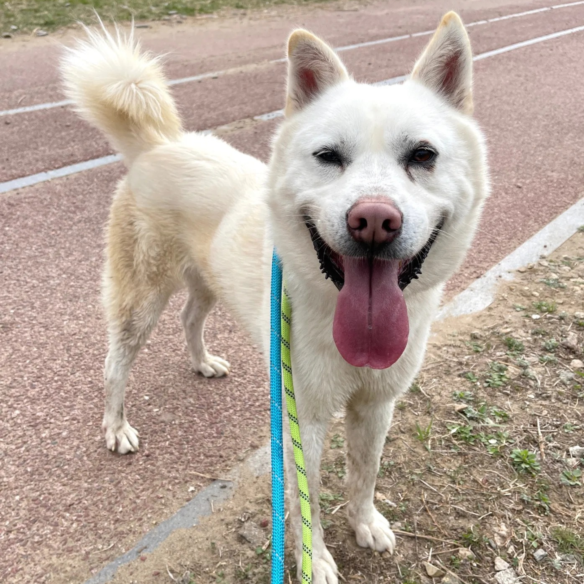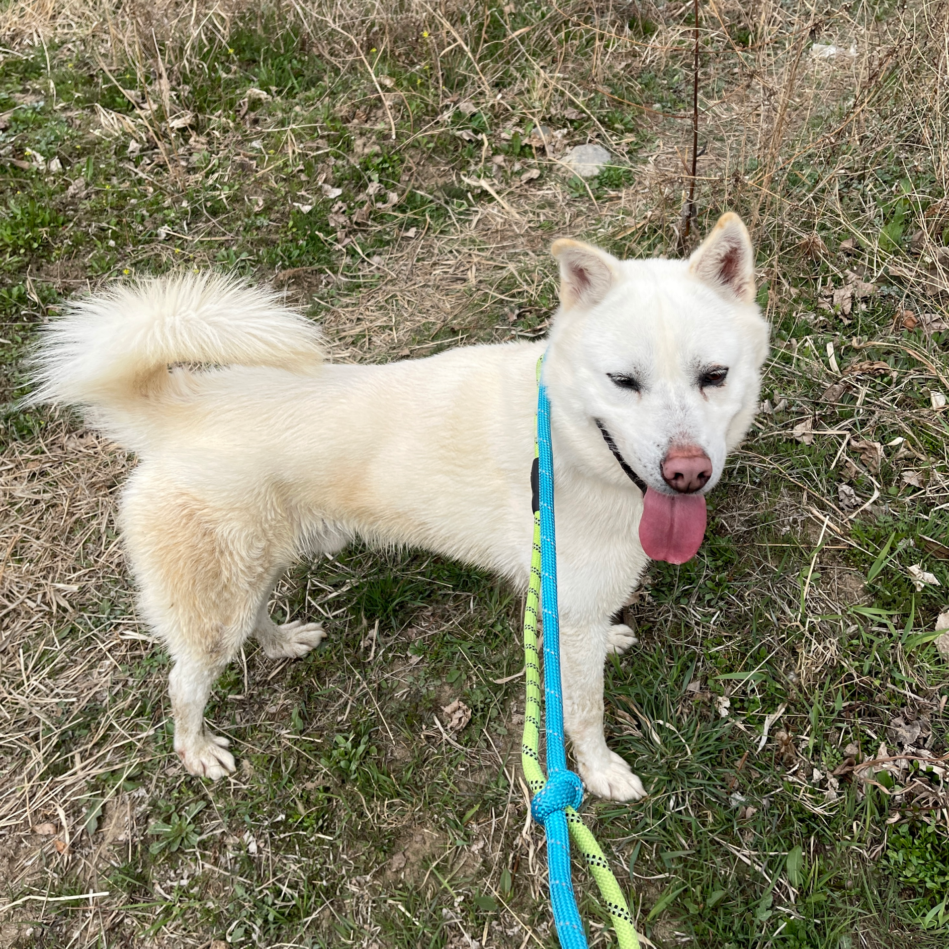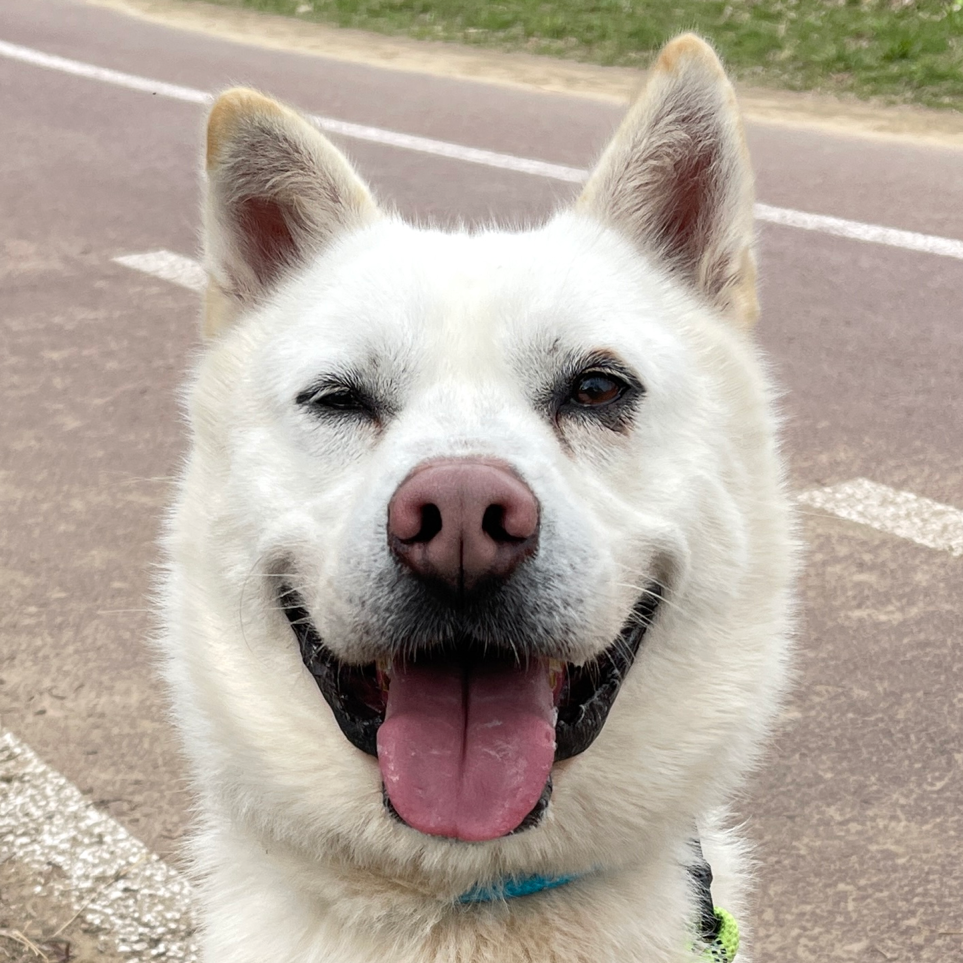 Harold ist ein großer, majestätischer Jindo-Rüde, der zu Beginn des letzten Jahres ins Tierheim kam. Er ist eine lebhafte und glückliche Seele, die sich von Anfang an gut mit den Freiwilligen verstanden hat. Bei seinem ersten Spaziergang zeigte er seine Intelligenz, indem er verschiedenen Befehlen für leckere Leckerlis und Liebe von den Menschen folgte. Harold liebt die Natur, das Erkunden und Leckerlis und hat ein einzigartiges, ausdrucksstarkes Gesicht mit einem Auge, das etwas kleiner ist als das andere. Sein großes, fröhliches Lächeln steckt an, und er sitzt freudig für seine Leckerlis!