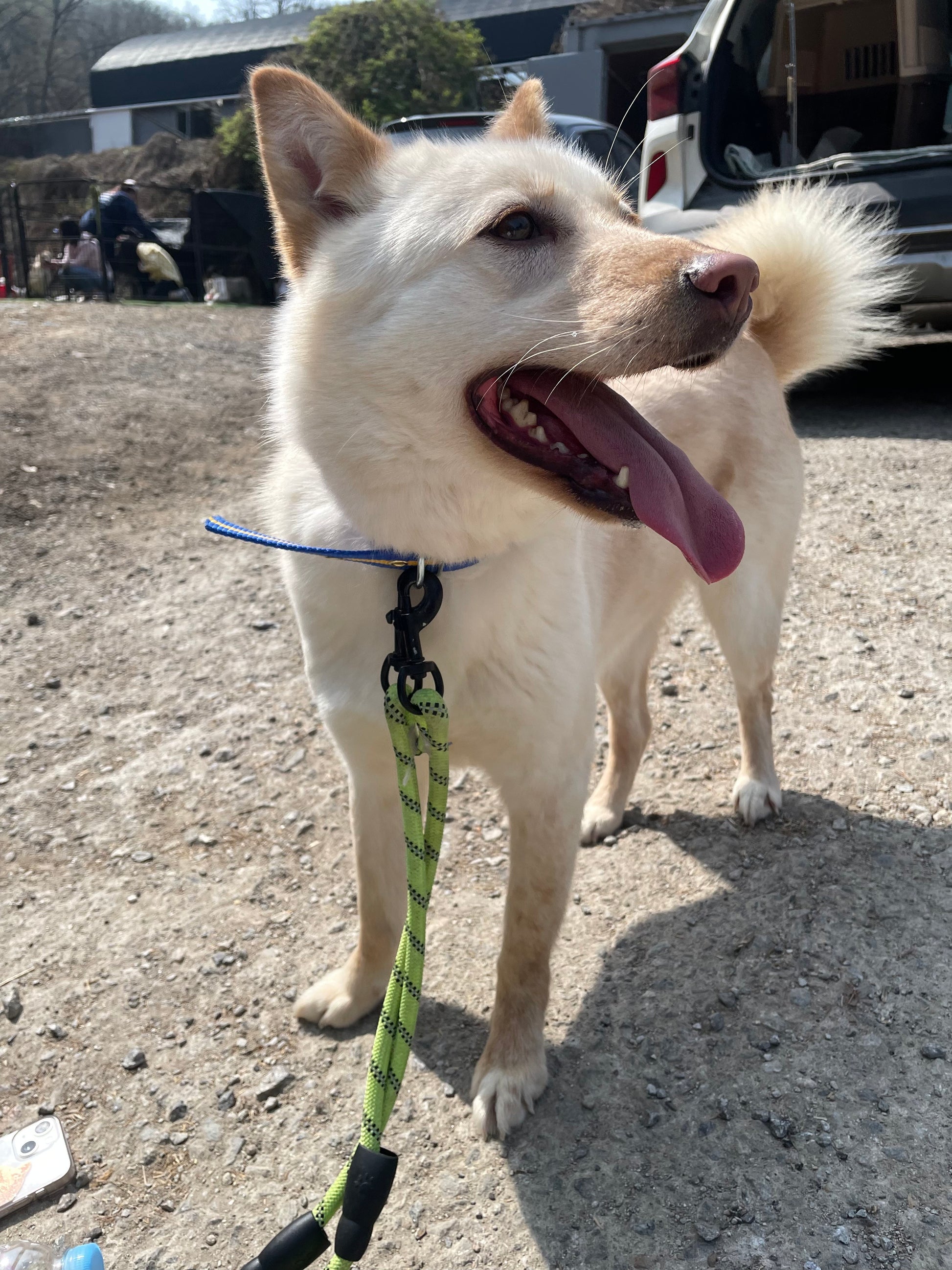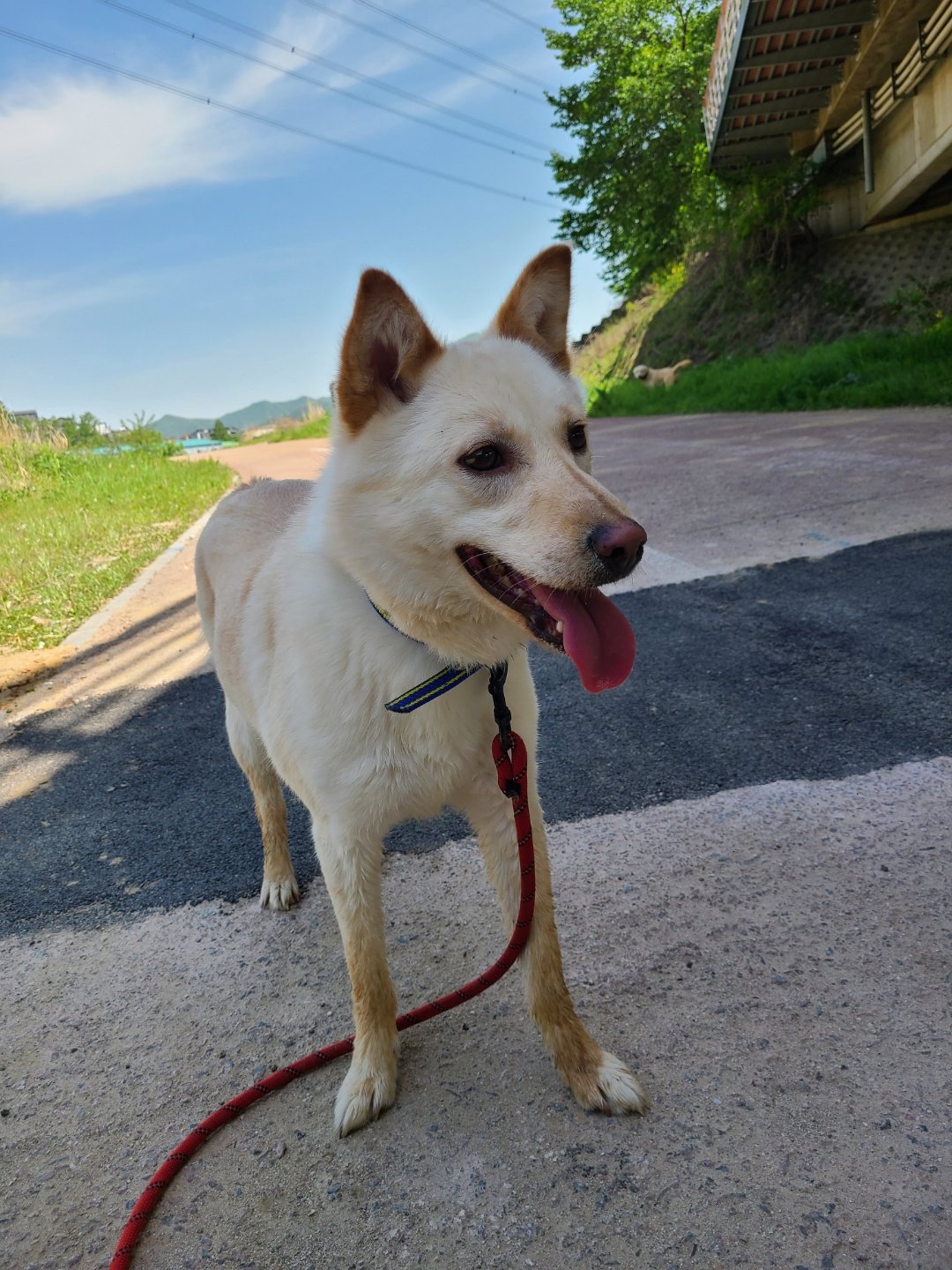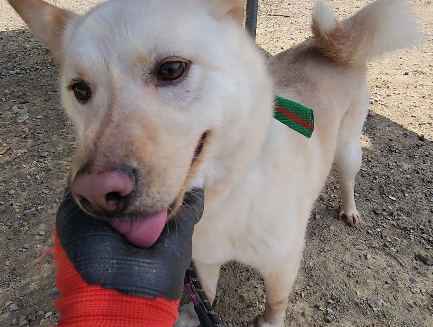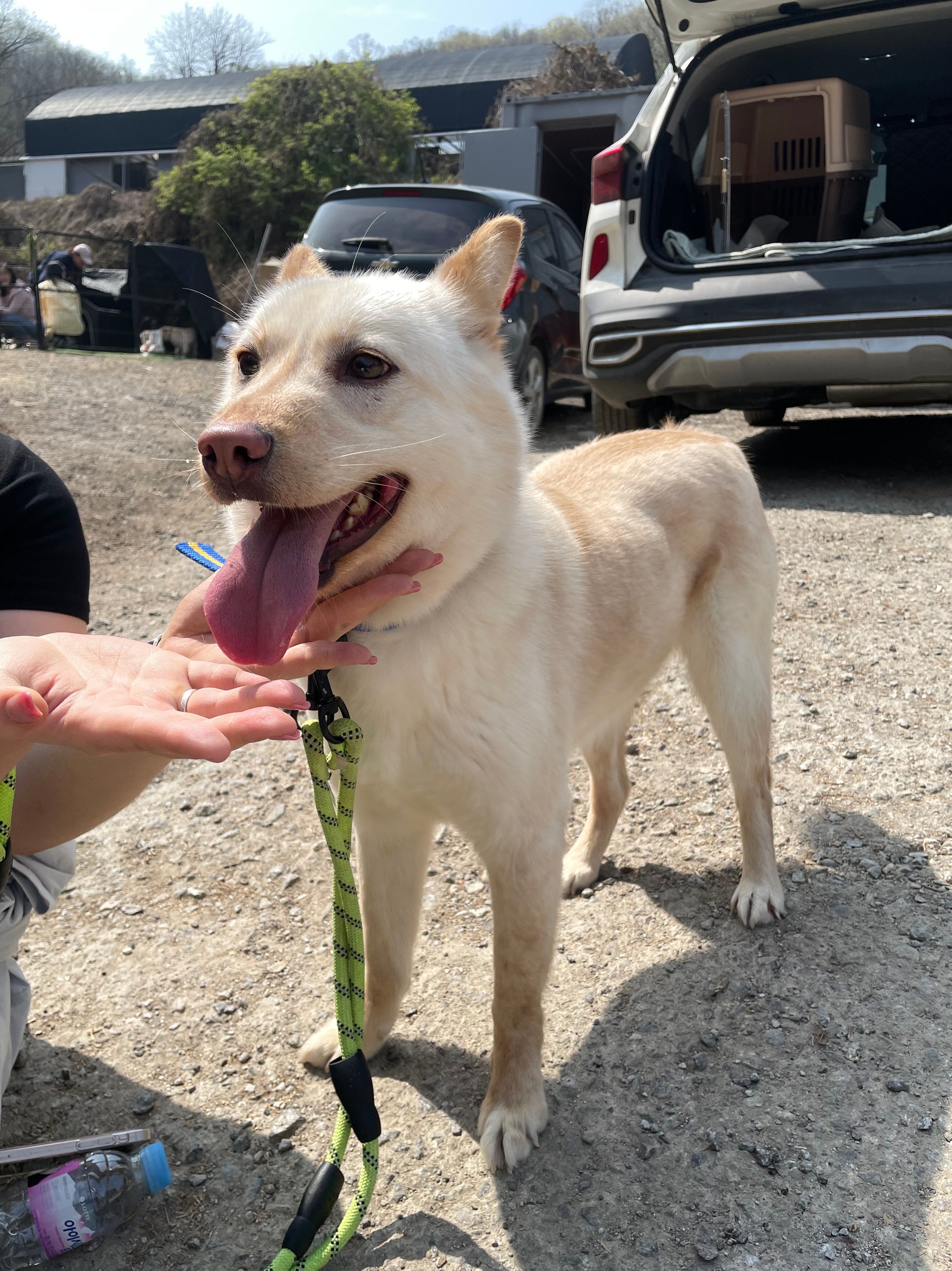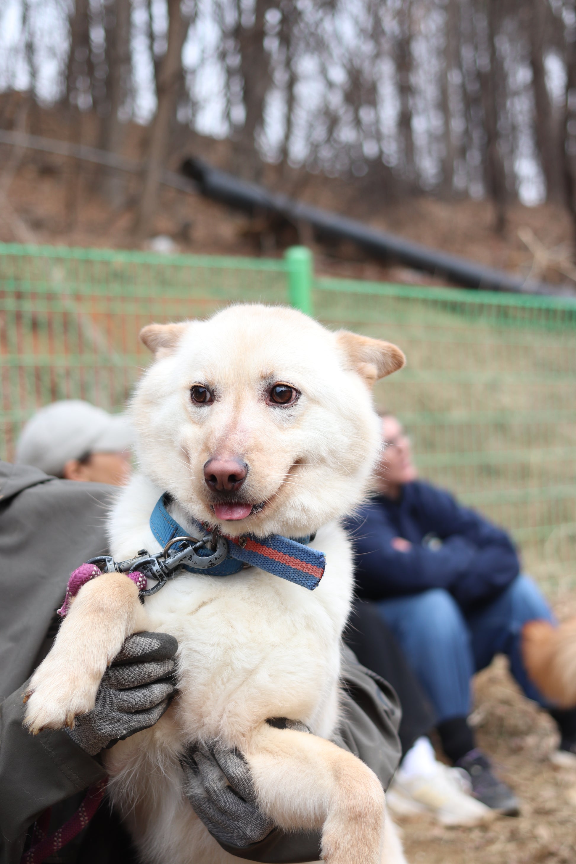 Anfangs war Hwasa als Welpe etwas schüchtern, doch das hat sie längst hinter sich gelassen. Heute ist sie ein echter Sonnenschein! Sie ist die energiegeladenste unter ihren Geschwistern, doch trotz ihrer Lebhaftigkeit verhält sie sich gegenüber ihren Spaziergeh-Begleitern sehr respektvoll. Sie liebt es, Zeit mit den Freiwilligen zu verbringen, sich kuscheln zu lassen und einfach draußen unterwegs zu sein. Mit ihrem fröhlichen Lächeln und ihren süßen Bitten um Streicheleinheiten bezaubert sie alle!