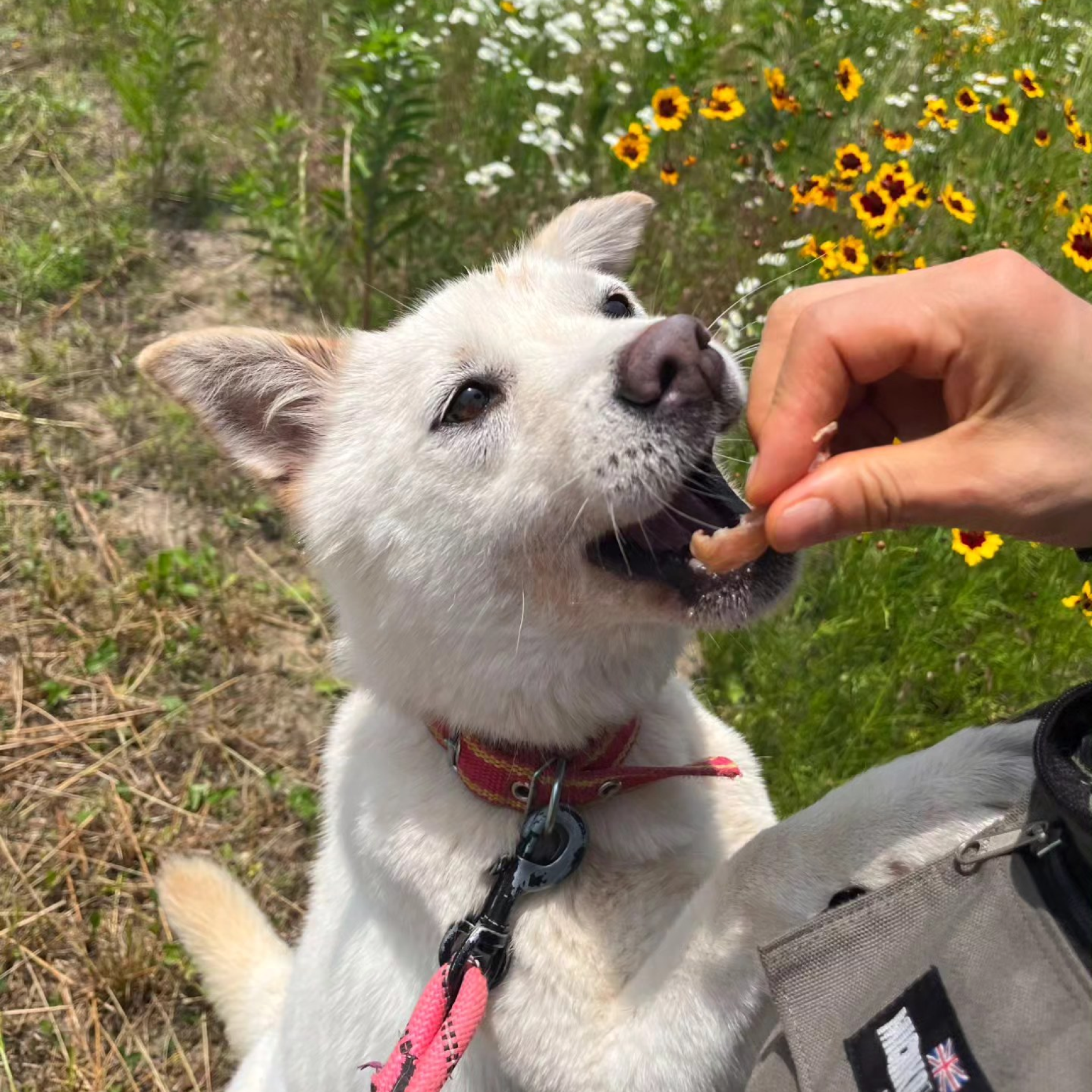 Hier ist, was einer unserer Freiwilligen über Luna zu sagen hatte: "Luna ist in Gegenwart von Fremden, die sie nicht kennt, ein wenig schüchtern, aber das könnte sicherlich mit ein paar Leckerlis behoben werden. Wenn sie bei denen ist, die sie gut kennt, ist sie sooo liebenswert und sucht nach Bauchreibungen. Luna wäre sicherlich ein guter, süßer Begleiter in jedem Zuhause."