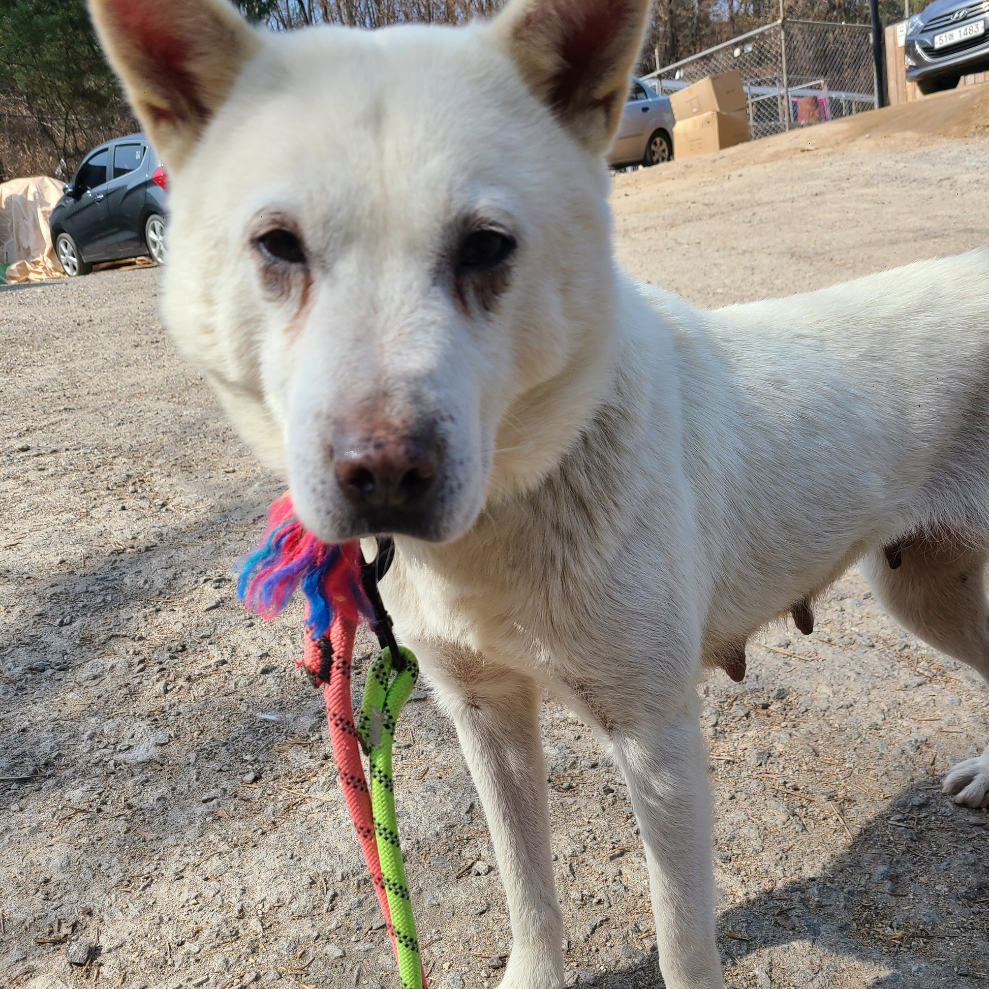 Madeline kam im Januar 2023 mit ihrem Wurf von fünf süßen kleinen Welpen ins Tierheim, die seitdem zu schönen Jindo-Mischlingen wie ihre Mama herangewachsen sind. Die meisten der Familie, einschließlich Madeline, warten noch auf liebevolle Familien, die sie adoptieren. Es wird geschätzt, dass Madeline um 2019 geboren wurde, aber aufgrund ihrer ruhigen Persönlichkeit und ihres Aussehens denken wir, dass sie etwas älter sein könnte. Madeline ist eine sanfte Seele, die nichts mehr liebt, als gemütliche Spaziergänge mit einem Freiwilligen zu unternehmen. Sie braucht etwas Zeit, um sich an neue Menschen und Berührungen zu gewöhnen, scheint aber eine loyale Freundin zu sein, wenn sie langfristig Vertrauen aufbauen kann. Sie versteht sich auch gut mit ihrem männlichen Hundekumpel im Tierheim.