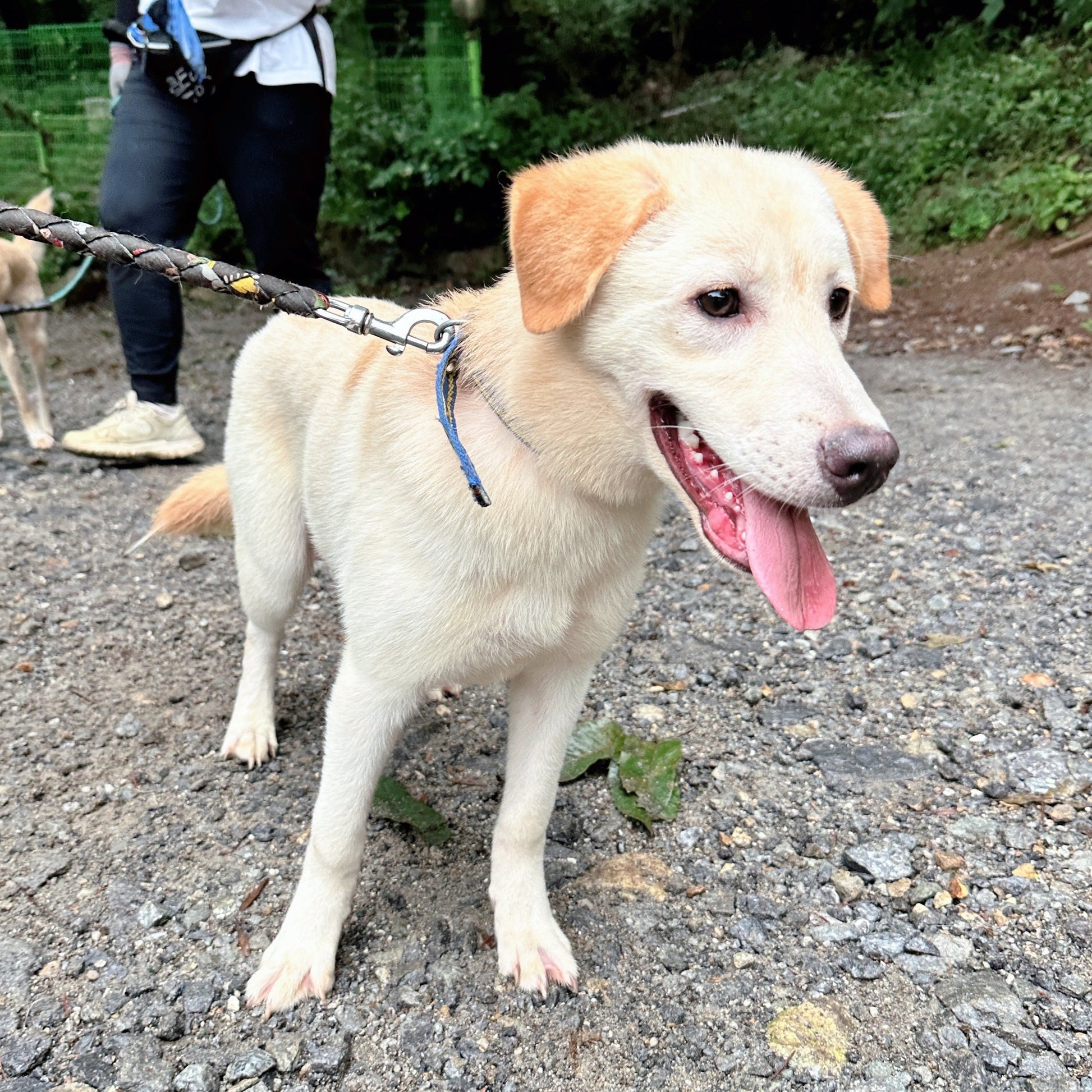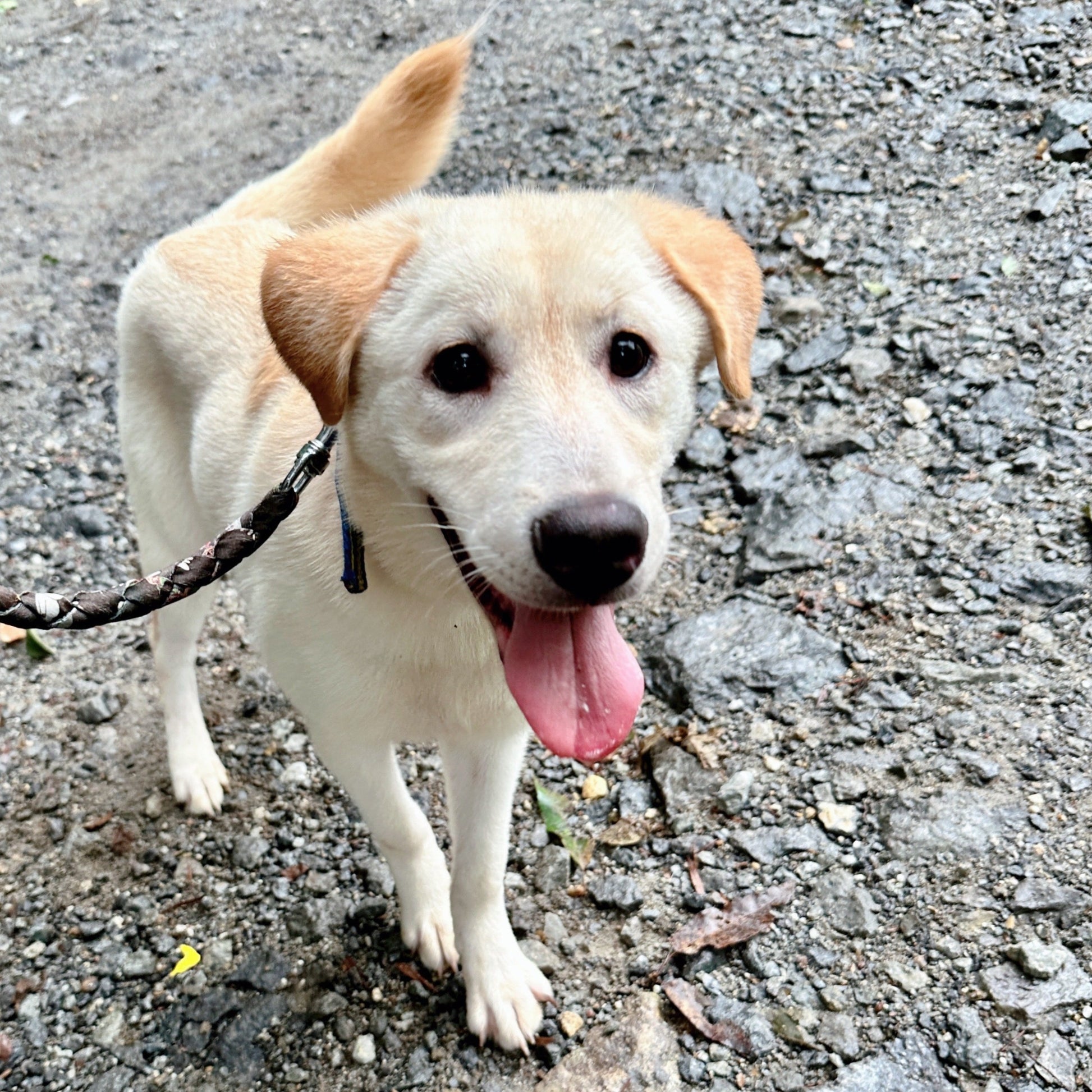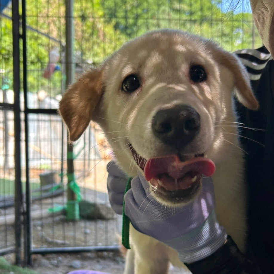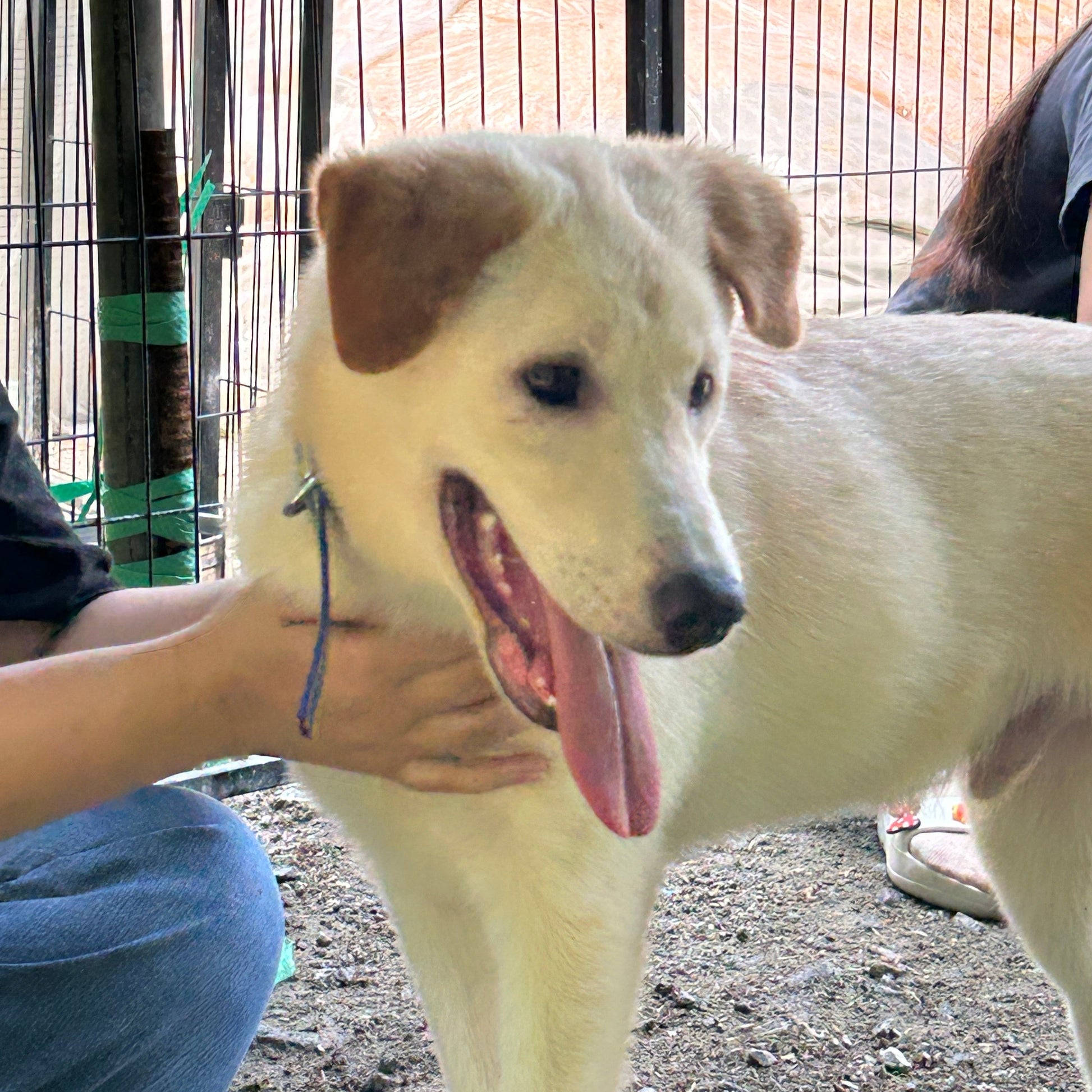 Hallo zusammen, trefft Maon aus der Familie "Hangeul"! Maon und seine vier Geschwister - 나온, 다온, 가온 und 라온 - wurden nach den ersten fünf Lauten des koreanischen Alphabets benannt. Sie sind eine Mischung aus Labrador und Jindo Welpen, die als winzige Babys früher in diesem Jahr zu uns kamen und zu liebenswerten Hunden herangewachsen sind, von denen erwartet wird, dass sie bei voller Größe etwa 17-20 kg wiegen. Dank unserer ehrenamtlichen Helfer bei der Welpensozialisierung am Samstag hatten sie viel Spaß mit Menschen und anderen Hunden, und sie alle haben freundliche Persönlichkeiten, eher wie Labradore als Jindos. Maon ist der freundlichste und liebevollste seiner Familie! Er liebt Menschen und sucht von allen Kuscheln und Umarmungen. Er ist verspielt und genießt es zu graben, mit Spielzeug zu spielen und zu schwimmen. Maon sieht seinem Bruder Daon sehr ähnlich, aber er hat ein gelberes Fell und gelbe Ohren. Wir suchen immer noch nach einem Zuhause für Maon und seine Geschwister, also wenn du daran interessiert bist, ihnen ein Leben voller Spaziergänge, Kuscheln und Leckerbissen zu geben, fülle bitte eine Adoptionsanfrage aus, und wir werden dir bei dem Prozess helfen.