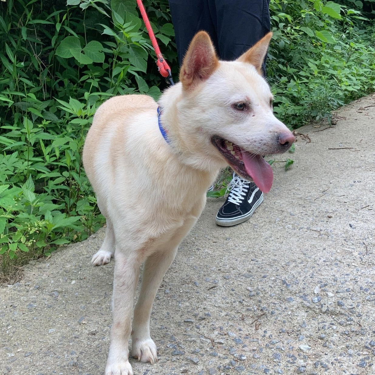 Maru ist ein männlicher cremefarbener Jindo, der im Juni letzten Jahres (2020) ins Tierheim kam. Als Maru hier ankam, war er ein winziger Welpe mit nur 7 kg, aber er ist zu einem großen Jungen herangewachsen! Er ist attraktiv und charaktervoll mit einer sensiblen Seite. Maru liebt seine Mitbewohner, einschließlich Lalo, und spielt gerne mit ihnen. Anfangs kann er gegenüber neuen Menschen etwas vorsichtig sein, aber sobald er merkt, dass sie ihm nur Liebe zeigen wollen, taut er schnell auf. Maru ist ein abenteuerlustiger Geist, der bei seinen Spaziergängen mit unseren Freiwilligen gerne die Natur erkundet. Er schnüffelt, rennt und springt vor Freude, was ihn zum idealen Begleiter für Wanderungen und Abenteuerliebhaber macht!