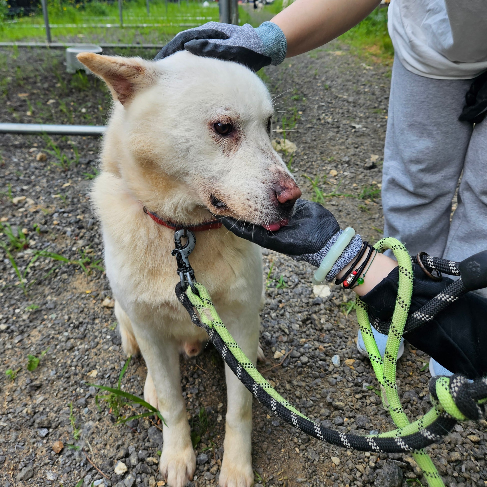 Aber hier kommt der schöne Teil: Nemo hat sich so sehr verbessert. Er hat Vertrauen zu den bekannten Mitarbeitern entwickelt, begrüßt sie mit einem großen Lächeln und bittet um leckere Leckereien und Zuneigung. Habe ich erwähnt, dass er Leckereien wirklich liebt? Er hat keine Aggressionen gegenüber anderen Hunden gezeigt; tatsächlich ist er neugierig und möchte ihnen entweder folgen oder sie einfach nur beobachten, wie sie vorbeigehen. Er ist auch ein guter Spaziergänger. Sein Selbstvertrauen wächst täglich, und mit langsamen, sanften Annäherungen genießt er jetzt Streicheleinheiten und Kuscheln.