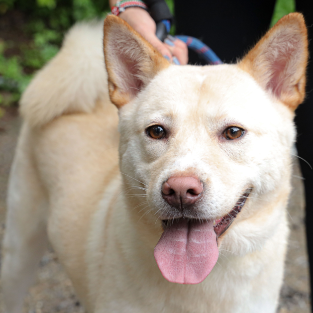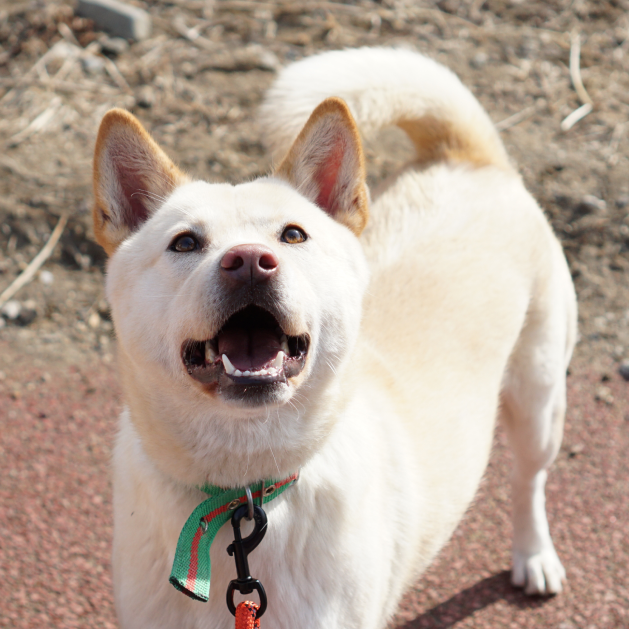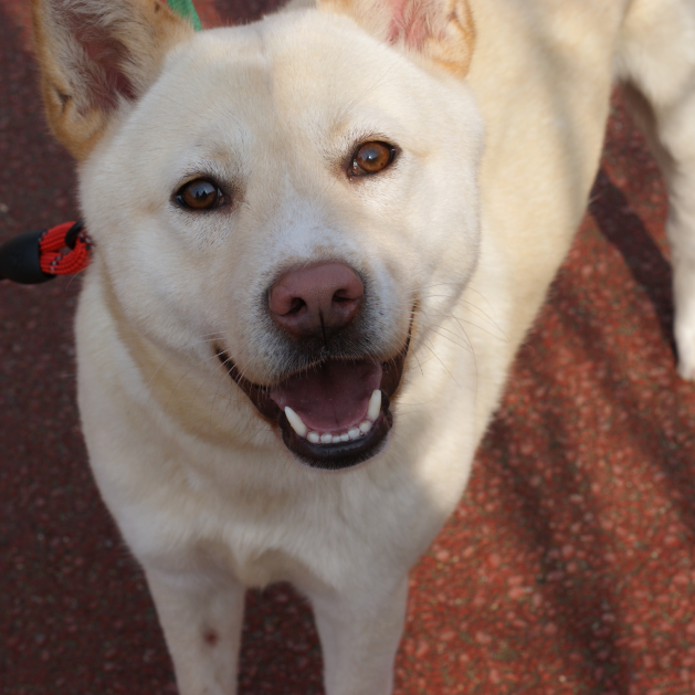 Rocket ist eine weibliche Jindo-Hündin, die schon seit geraumer Zeit in unserem Tierheim lebt. Wir wissen nicht genau, wann sie angekommen ist und wie alt sie genau ist, aber sie ist immer noch jung und lebhaft! Sie hat ein entzückendes getoastetes Fell und eine niedliche rosa Nase, was sie besonders liebenswert macht, vor allem wenn sie lächelt! Sie zieht zwar ziemlich an der Leine, aber das liegt wahrscheinlich daran, dass sie nie richtig gelernt hat, an der Leine zu laufen. Das ist jedoch kein großes Problem, denn Rocket ist eine gute Zuhörerin und lässt sich gerne von Futter motivieren, sodass das Training für sie ein Kinderspiel wäre! Rocket ist auch sehr sanftmütig gegenüber Menschen und genießt die Aufmerksamkeit, die sie von den Freiwilligen bekommt. Sie ist ein absolutes Model vor der Kamera und posiert gerne mit jedem für all diese Selfies!