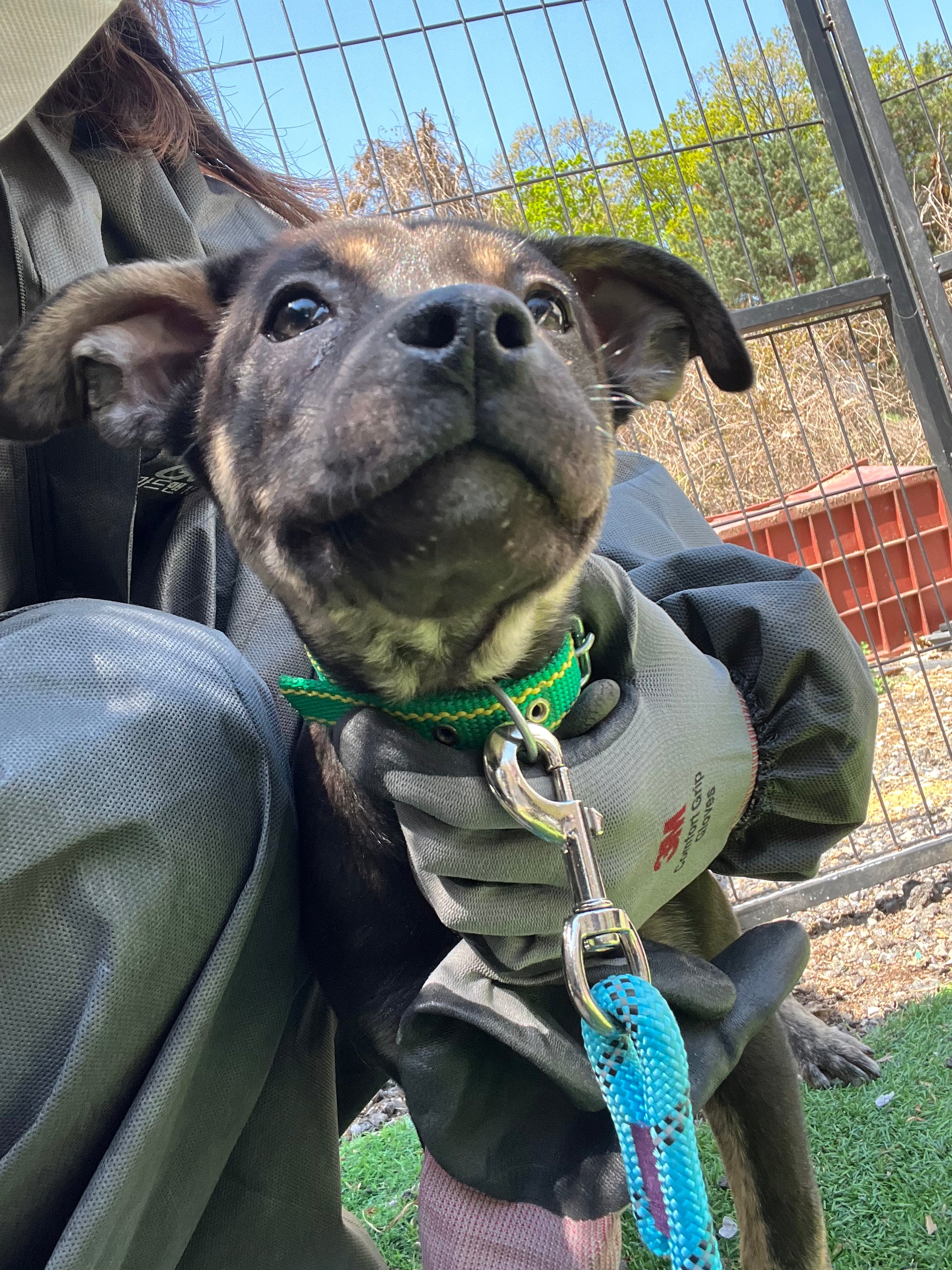 Saffron ist eine kurzhaarige Mischlingshündin, die Anfang 2023 als winziges Neugeborenes zusammen mit ihren sechs Geschwistern und ihrer Mutter ins Tierheim kam. Saffron und ihre Geschwister nahmen als Welpen an einigen unserer Wochenendbetreuungsprogramme teil, und wir konnten sehen, wie niedlich, verspielt und freundlich sie sind! Einer von Saffrons Geschwistern wurde bereits adoptiert, aber Saffron und der Rest ihrer Familie warten noch immer auf ihre Chance.