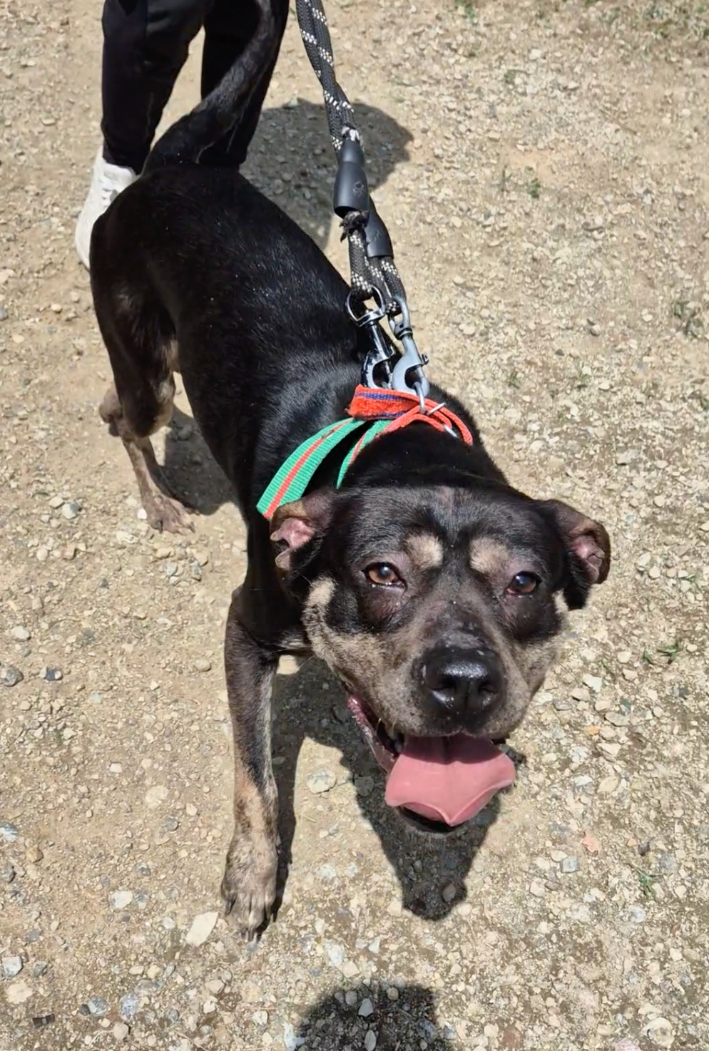Wir können nicht mit Sicherheit sagen, welche Rassen in ihr stecken, aber Saffron und ihre Geschwister zeigen einige Merkmale von Bull- oder Mastiff-Typen – zum Beispiel kurzes Fell und diese bezaubernden, faltigen Gesichter. Alle sechs Hunde haben ihr ganzes Leben im Tierheim verbracht und sind daher bei ihren monatlichen Spaziergängen verständlicherweise etwas schüchtern. Dennoch sind sie alle sanft und freundlich gegenüber Menschen und lieben es, Zeit mit Freiwilligen zu verbringen! Sie freuen sich über jede Streicheleinheit und Kuscheleinheit – und sie sind SO aufgeregt und glücklich, wenn es endlich raus zum Spaziergang geht!