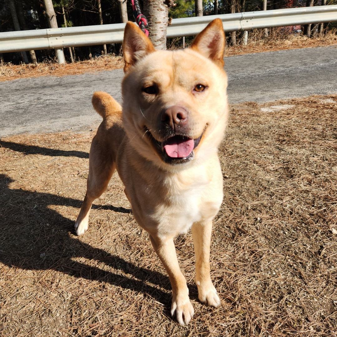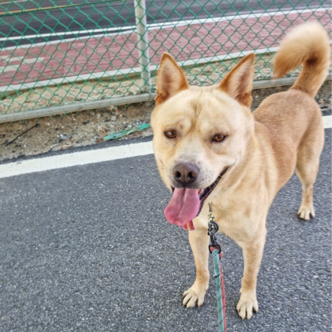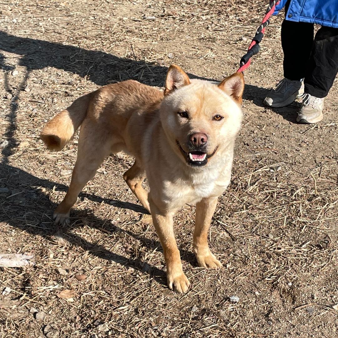 Geschätzt im Jahr 2019 geboren, ist V ein sehr niedlicher tan-farbener männlicher Jindo-Mischlingshund, der Ende 2021 in unser Partner-Tierheim, das Yongin Pound, aufgenommen wurde. V, benannt nach dem berühmten V von BTS, wurde alleine durch die Nachbarschaften trotten gefunden. Er war sehr nervös, als sie versuchten, ihn einzufangen, und musste tatsächlich sediert werden, um ihn in das Tierheim zu transportieren. Es wurde auch festgestellt, dass V ein altes Lederhalsband trug, als er zum ersten Mal gefunden wurde. Er muss einen früheren Besitzer gehabt haben, aber nach 3 Jahren ist ziemlich klar, dass sie nicht mehr nach ihm suchen. Trotz so vieler Jahre hinter Betonmauern ist V ein so schöner und lieber Junge! Er genießt wirklich seine Zeit draußen bei seinen Spaziergängen und schätzt all unsere Freiwilligen, die ihn auf Entdeckungstouren mitnehmen. Er wird anfangs etwas nervös, besonders wenn er nicht weiß, was los ist, aber sobald Sie ihm Liebe und Güte zeigen, vertraut V sofort. Er hat das süßeste Lächeln und ist so bereit, Menschen zu folgen.