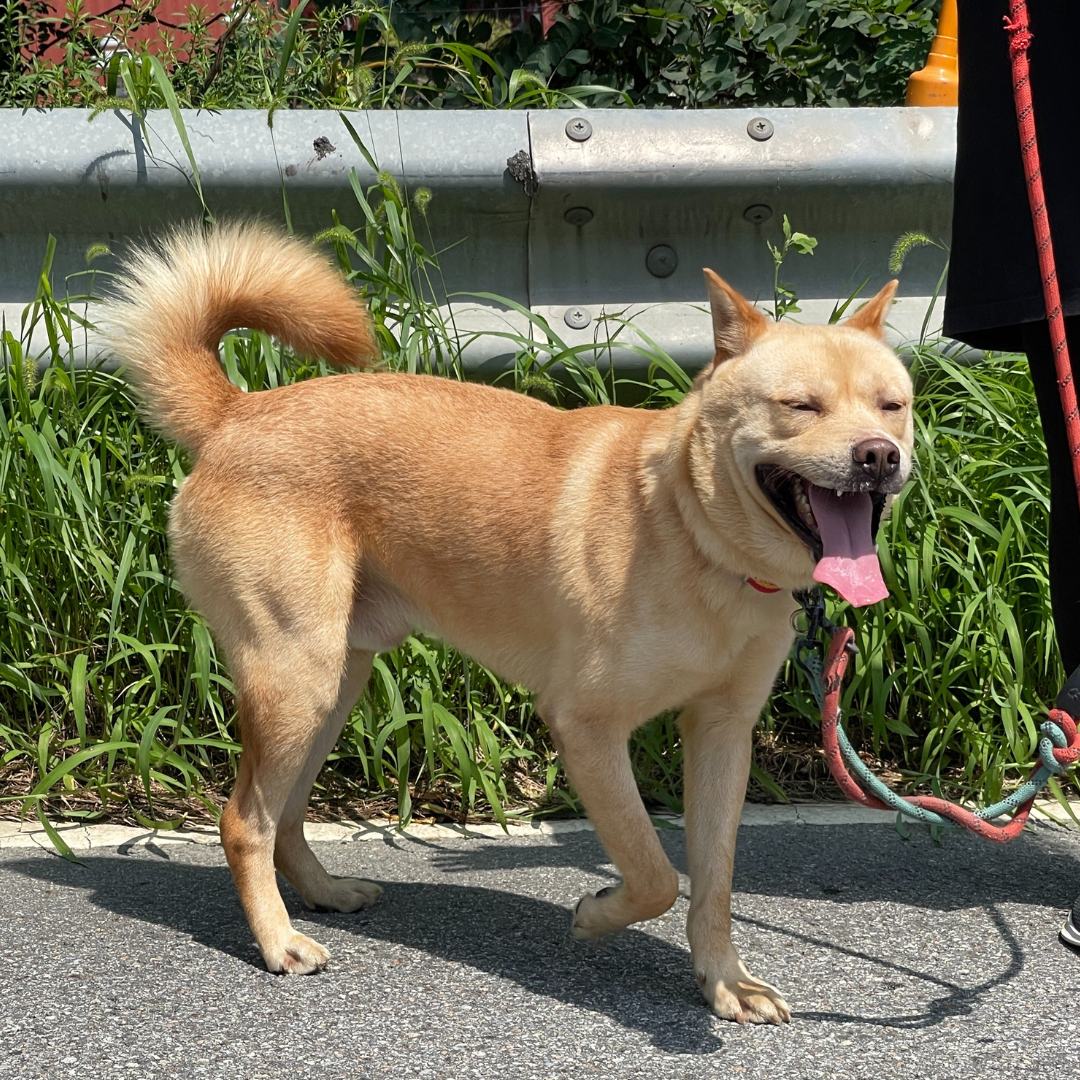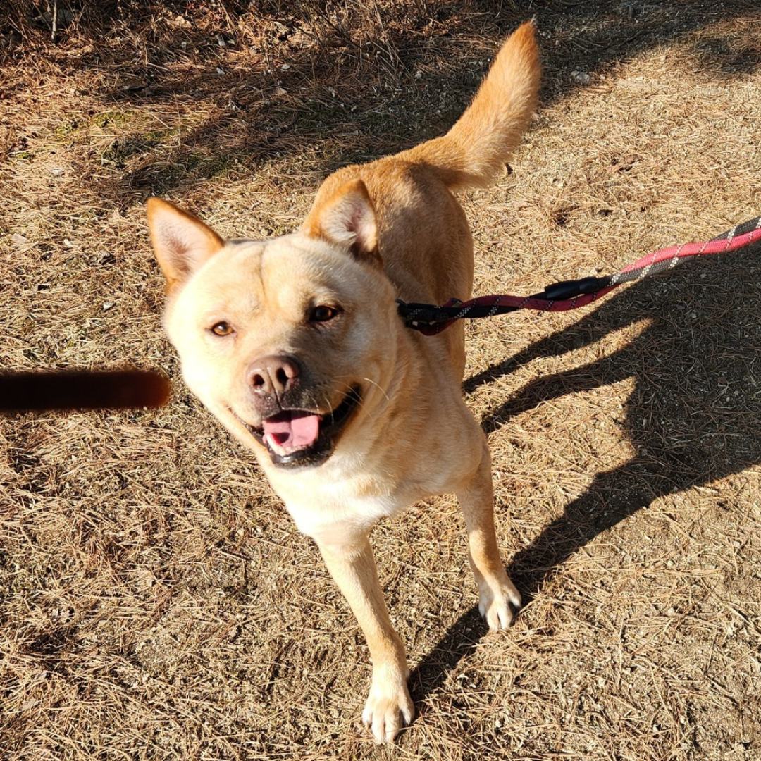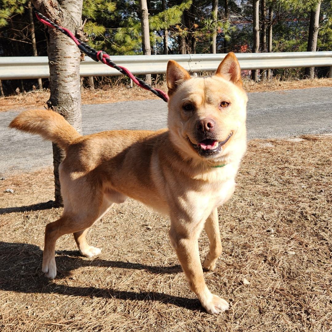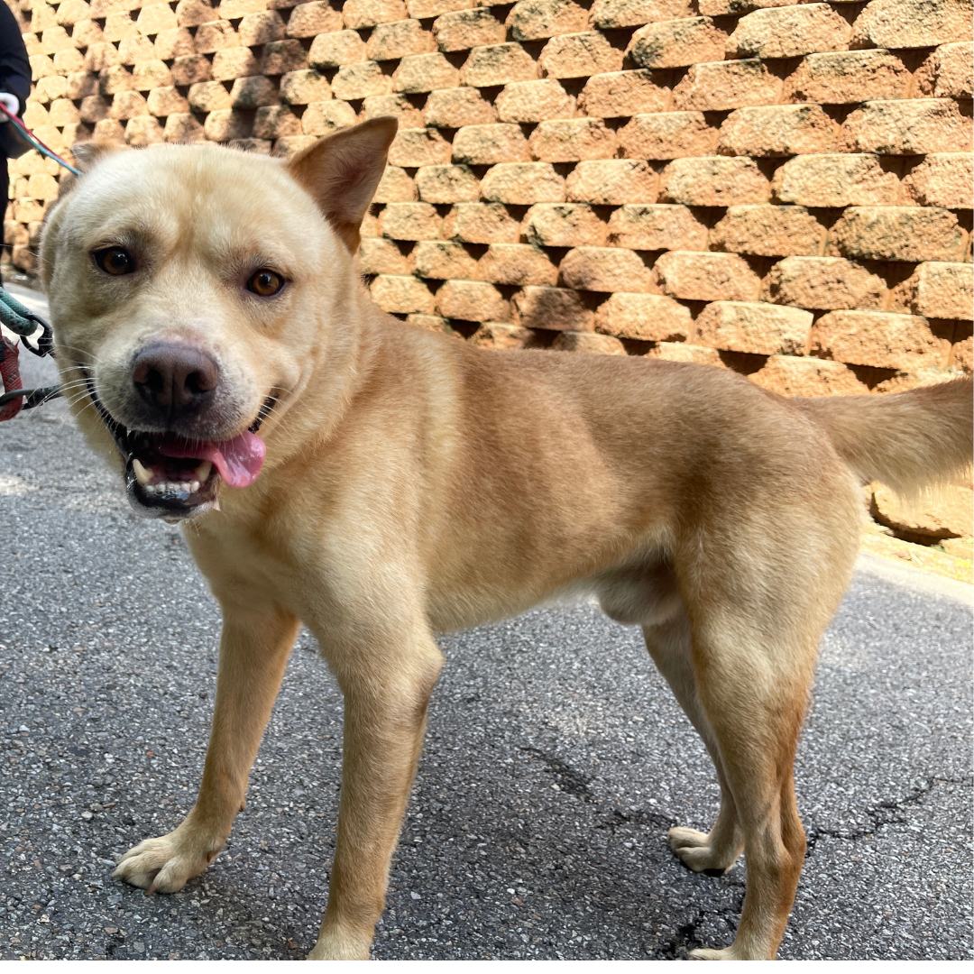 Geschätzt im Jahr 2019 geboren, ist V ein sehr niedlicher tan-farbener männlicher Jindo-Mischlingshund, der Ende 2021 in unser Partner-Tierheim, das Yongin Pound, aufgenommen wurde. V, benannt nach dem berühmten V von BTS, wurde alleine durch die Nachbarschaften trotten gefunden. Er war sehr nervös, als sie versuchten, ihn einzufangen, und musste tatsächlich sediert werden, um ihn in das Tierheim zu transportieren. Es wurde auch festgestellt, dass V ein altes Lederhalsband trug, als er zum ersten Mal gefunden wurde. Er muss einen früheren Besitzer gehabt haben, aber nach 3 Jahren ist ziemlich klar, dass sie nicht mehr nach ihm suchen. Trotz so vieler Jahre hinter Betonmauern ist V ein so schöner und lieber Junge! Er genießt wirklich seine Zeit draußen bei seinen Spaziergängen und schätzt all unsere Freiwilligen, die ihn auf Entdeckungstouren mitnehmen. Er wird anfangs etwas nervös, besonders wenn er nicht weiß, was los ist, aber sobald Sie ihm Liebe und Güte zeigen, vertraut V sofort. Er hat das süßeste Lächeln und ist so bereit, Menschen zu folgen.