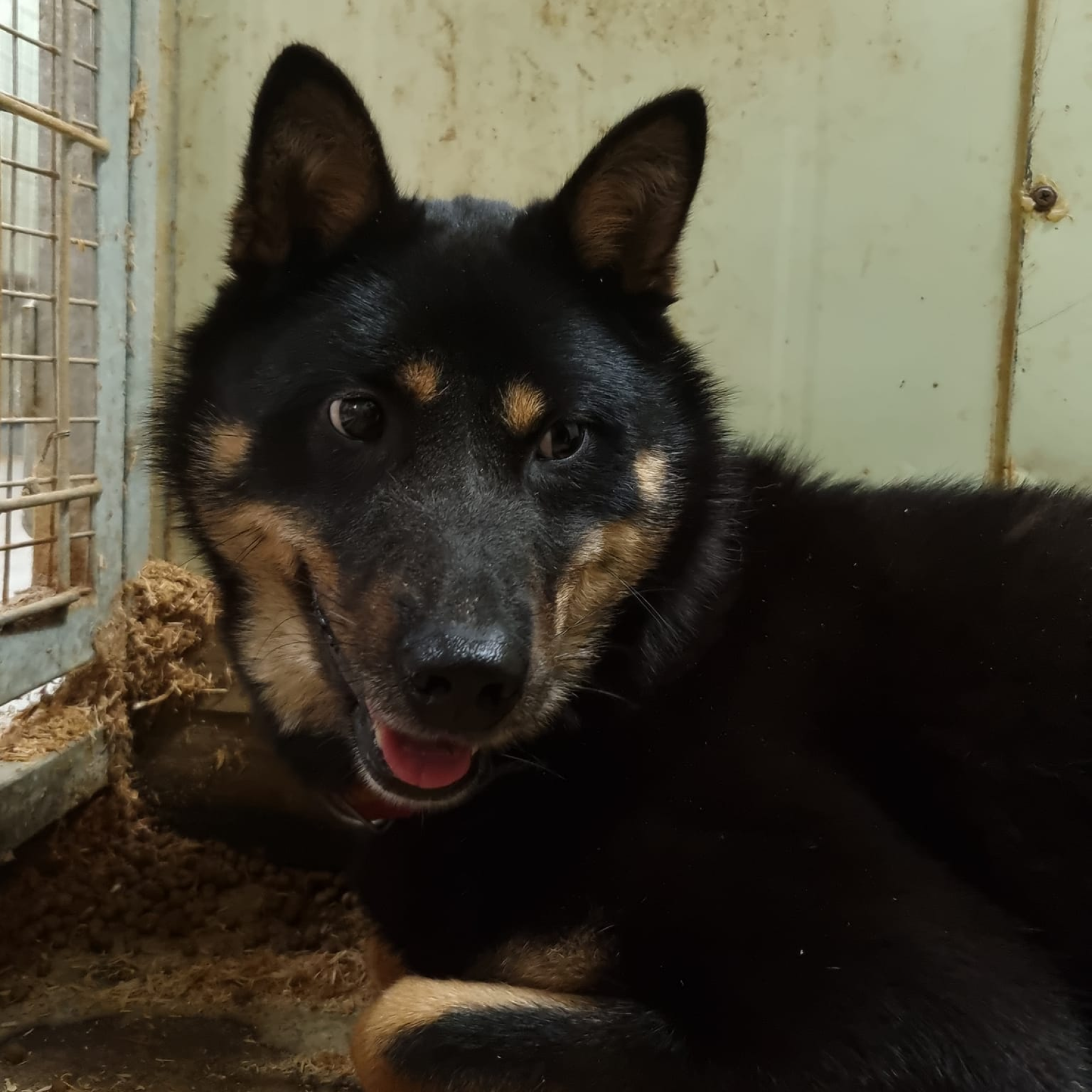 Dolly is a 13 kg female jindo mix who has been with us at the shelter since 2021. She is the most gorgeous girl with a lovely black and brown coat coloration. Our Dolly is having a hard time at the shelter and desperately deserves to get into a loving environment after two long years in a kennel.