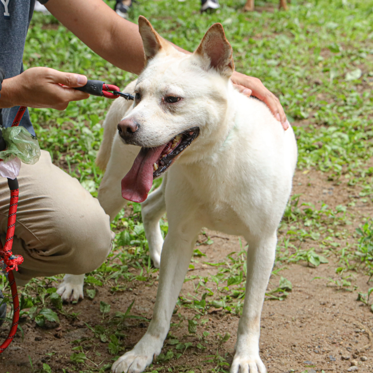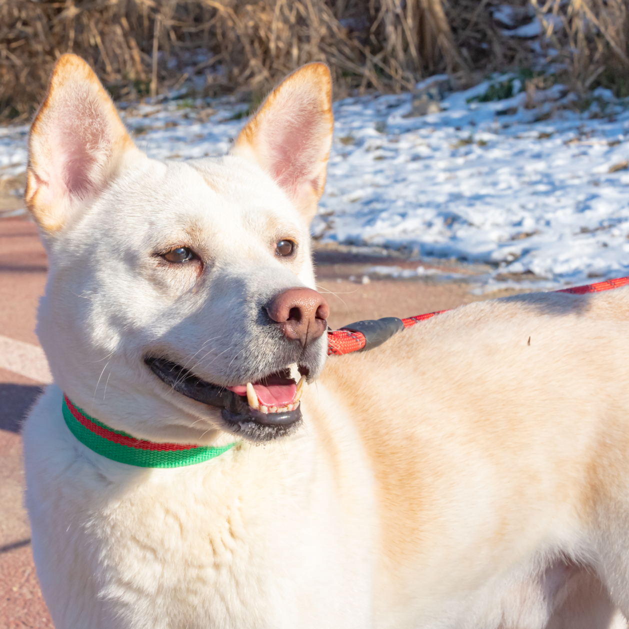 Fido is a male jindo mixed breed, weighing around 20kg and estimated to be 5-6 years old. He has been a long-term resident at our shelter, spending almost his entire life here. While we don't know much about his past, we do know that Fido is a sweet boy who adores life, going for walks, and exploring in the grass. He deserves all the love and happiness the world has to offer! With his bright eyes and cute pink nose, he's always eager to sniff and discover everything around him.