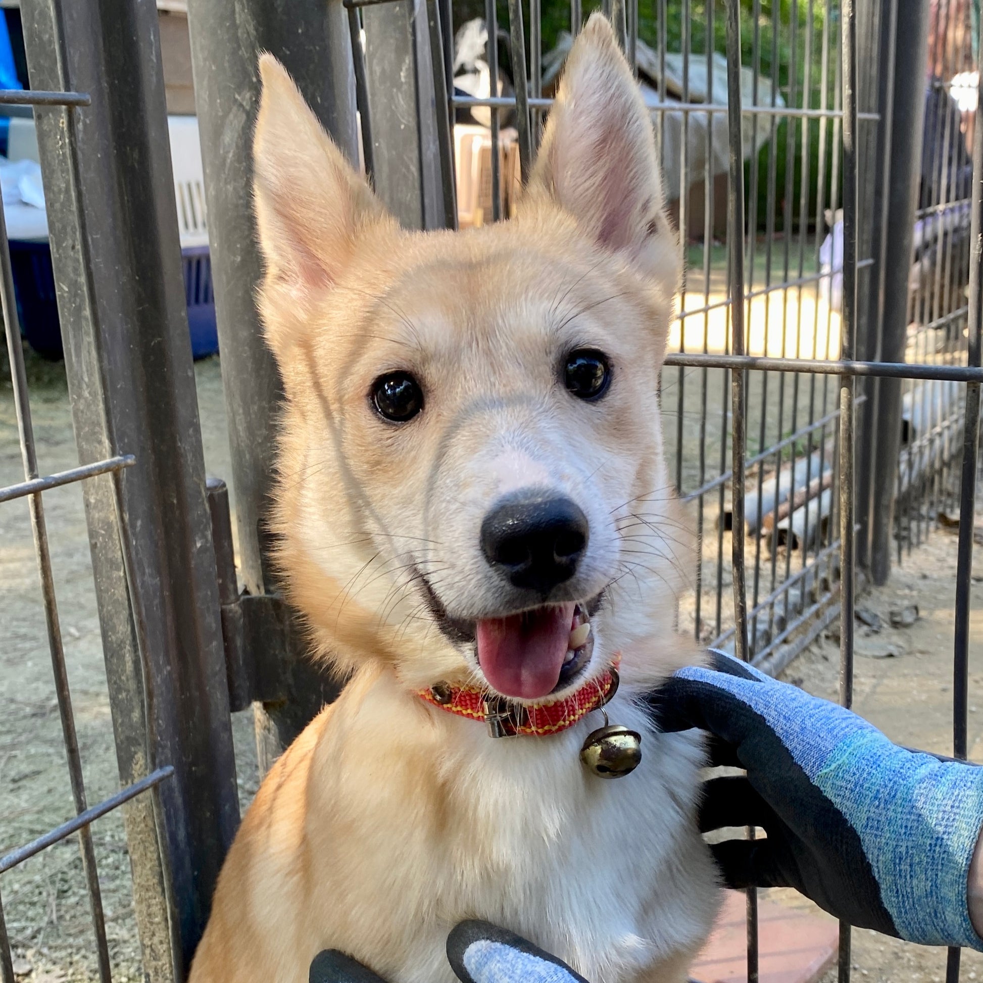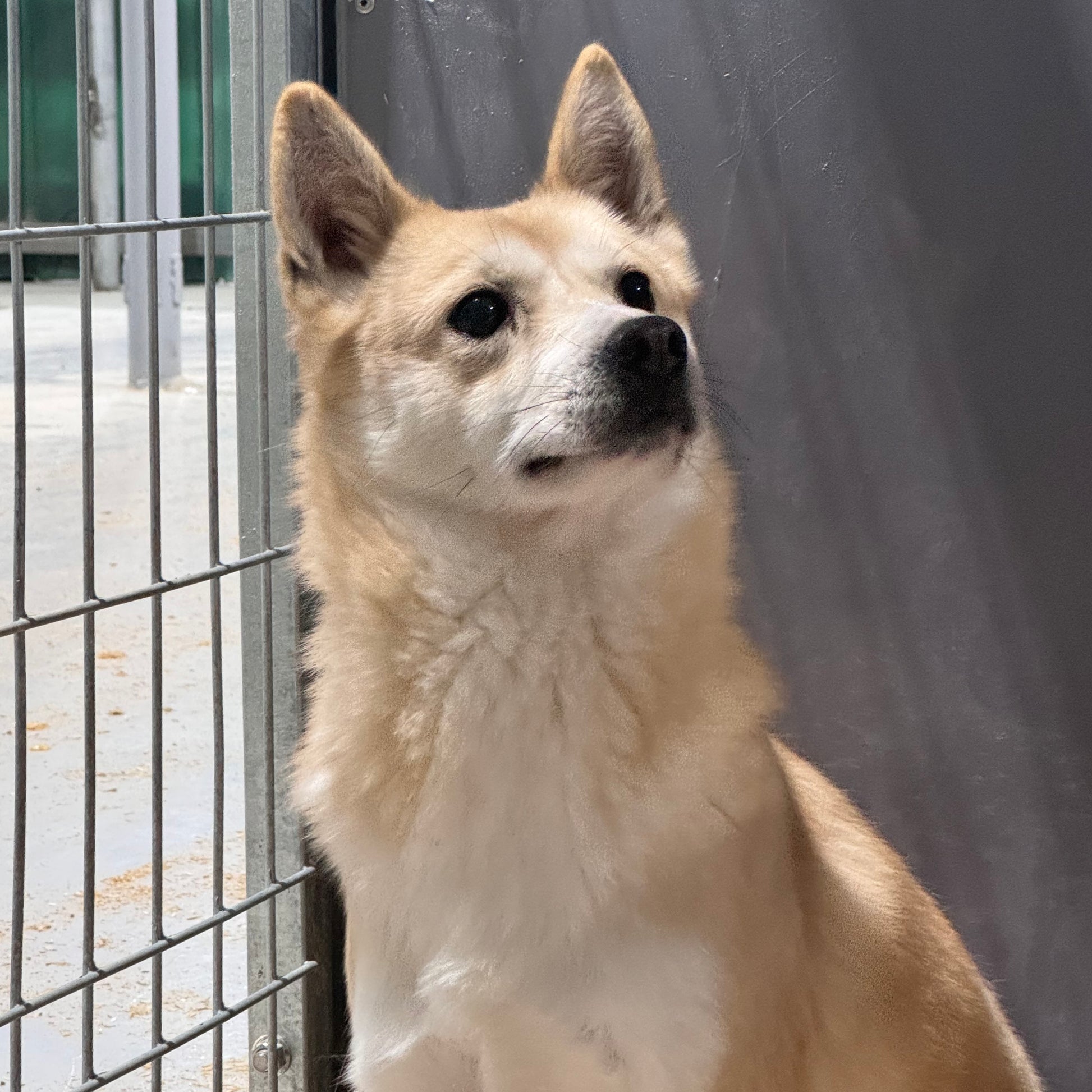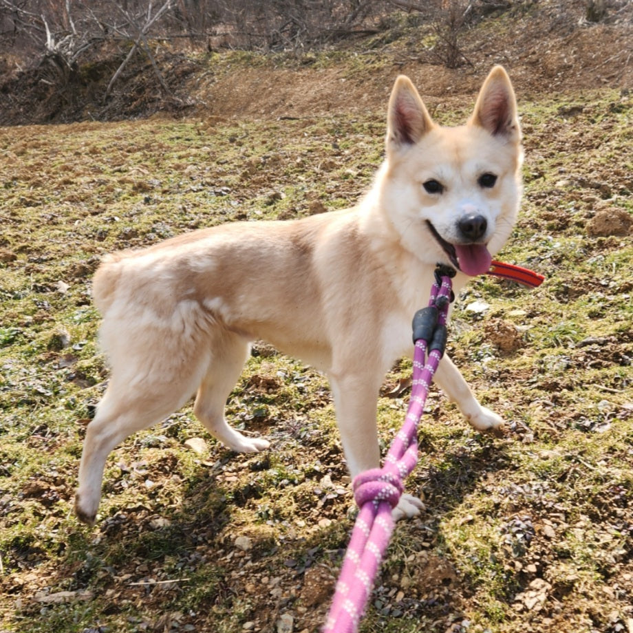 Gihoon is a cute, male jindo mixed boy born in 2022, who is one of the Squid Game Siblings! Gihoon is the only brother and is the shyest sibling out of his litter. He is very cute with his giant ears and teddy bear eyes, but he still needs a lot of time to warm up to people. Gihoon does really well with his siblings and loves to chase his sisters around and can even play with the other puppies during playtime in the Puppy Corner. However, he isn’t as focused on the hoomans who are in the Puppy Corner as other more sociable puppies are. But Gihoon leans on us whenever there is something scary or new he encounters, so we know for sure he can learn to come out of his shell. Gihoon is starting to learn how to walk on leash with his other siblings now that he is older. He was very wary so we sat with him to get him comfortable with the idea of the leash and being outside.