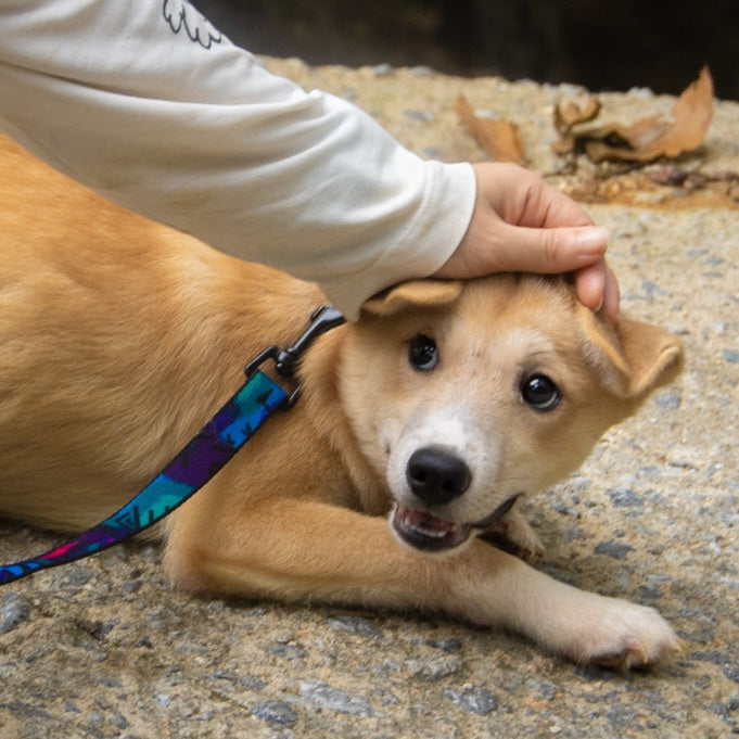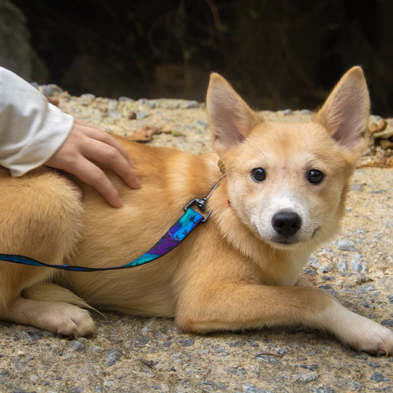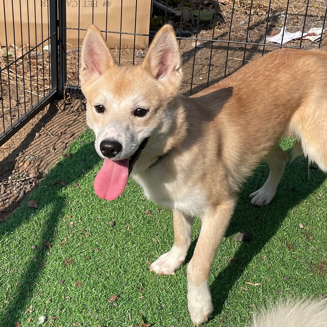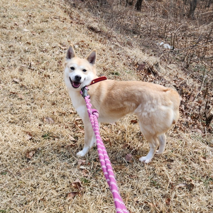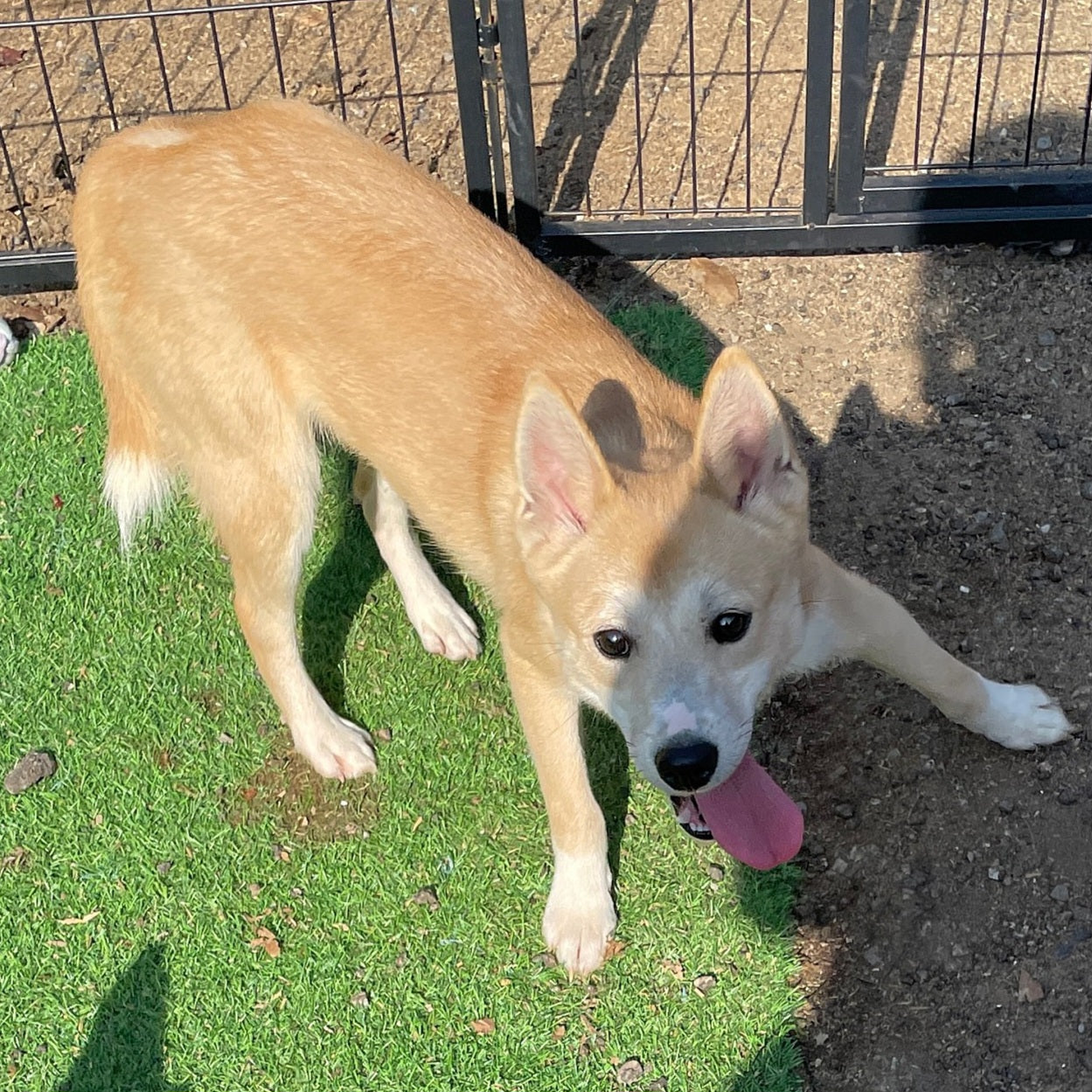 Gihoon is a cute, male jindo mixed boy born in 2022, who is one of the Squid Game Siblings! Gihoon is the only brother and is the shyest sibling out of his litter. He is very cute with his giant ears and teddy bear eyes, but he still needs a lot of time to warm up to people. Gihoon does really well with his siblings and loves to chase his sisters around and can even play with the other puppies during playtime in the Puppy Corner. However, he isn’t as focused on the hoomans who are in the Puppy Corner as other more sociable puppies are. But Gihoon leans on us whenever there is something scary or new he encounters, so we know for sure he can learn to come out of his shell. Gihoon is starting to learn how to walk on leash with his other siblings now that he is older. He was very wary so we sat with him to get him comfortable with the idea of the leash and being outside.