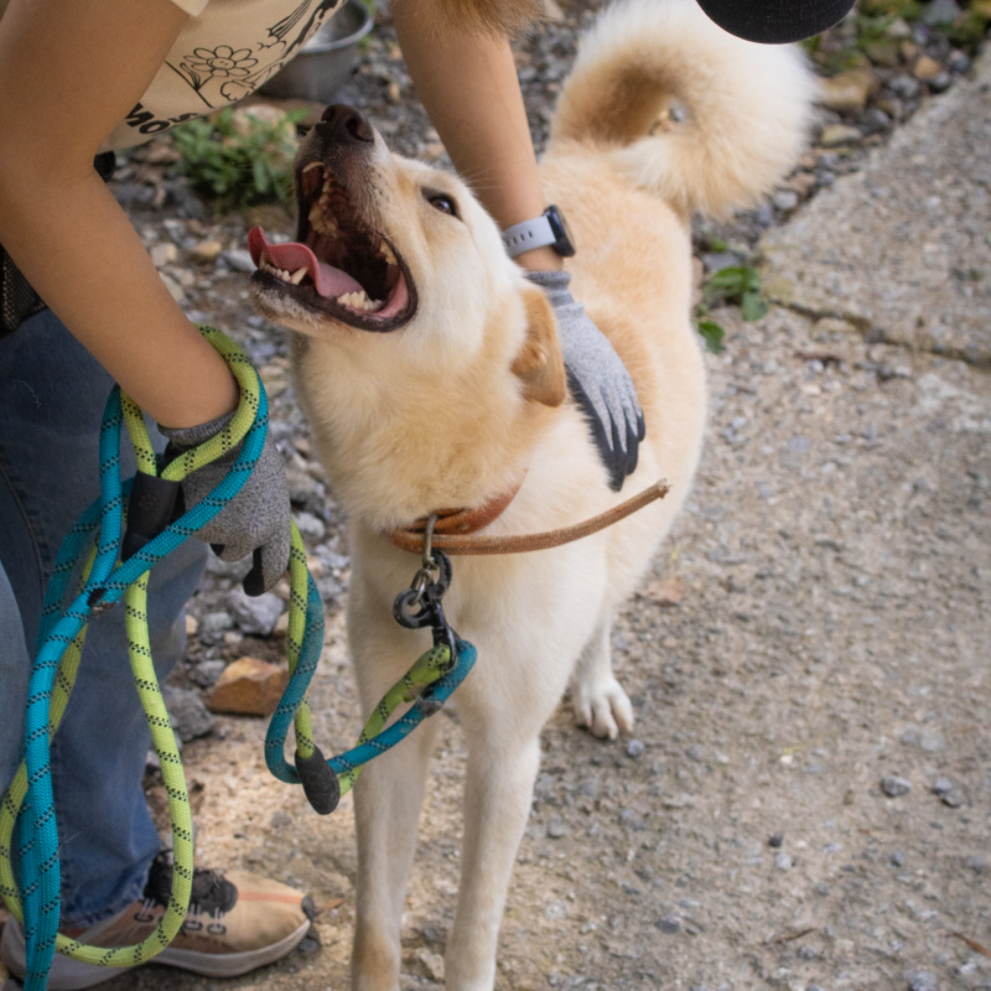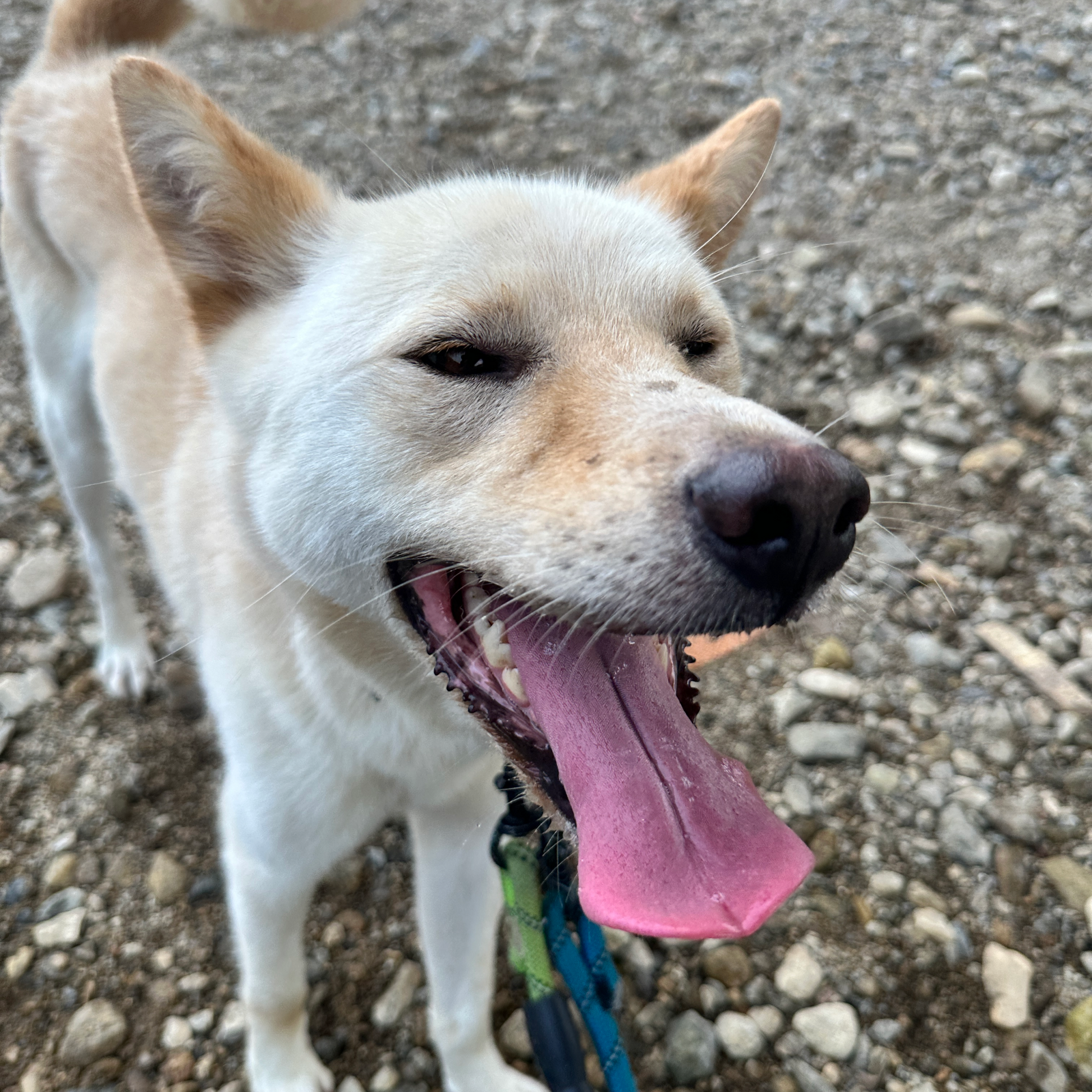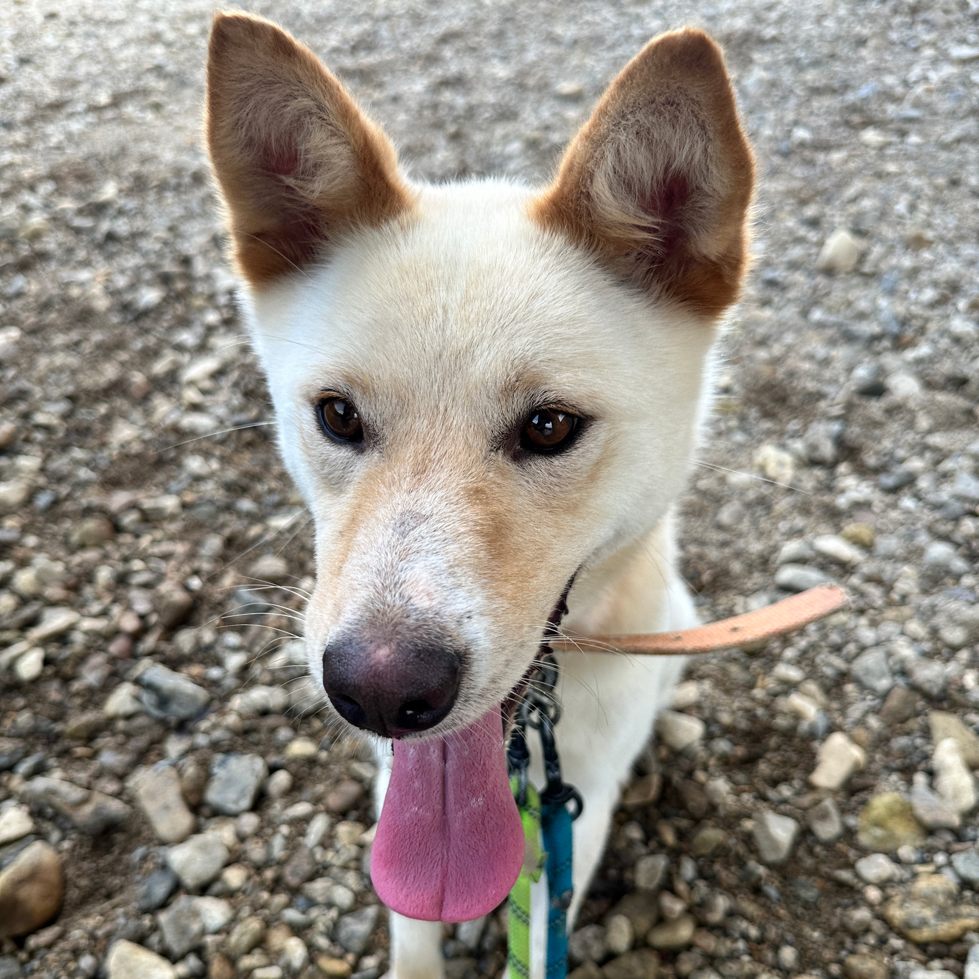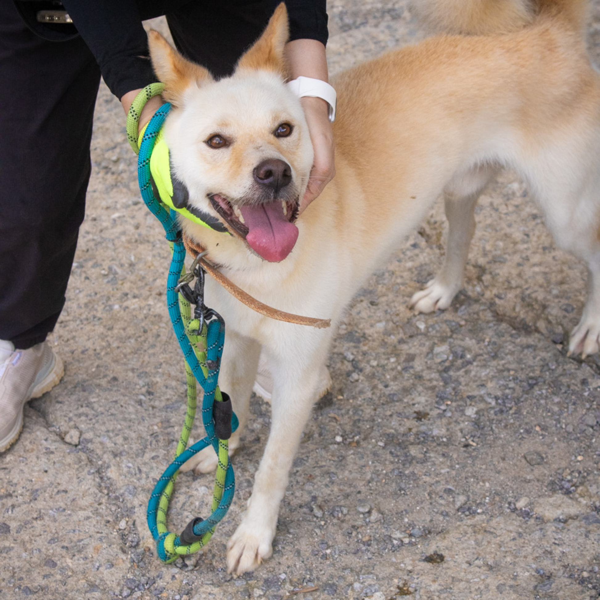Isaac is a slender young male jindo mix who arrived at the shelter in July 2023. Actually, his full name is “Isaac Toast,” named after the popular Korean fast food chain of the same name, due to his lovely coat being the color of toasted bread!