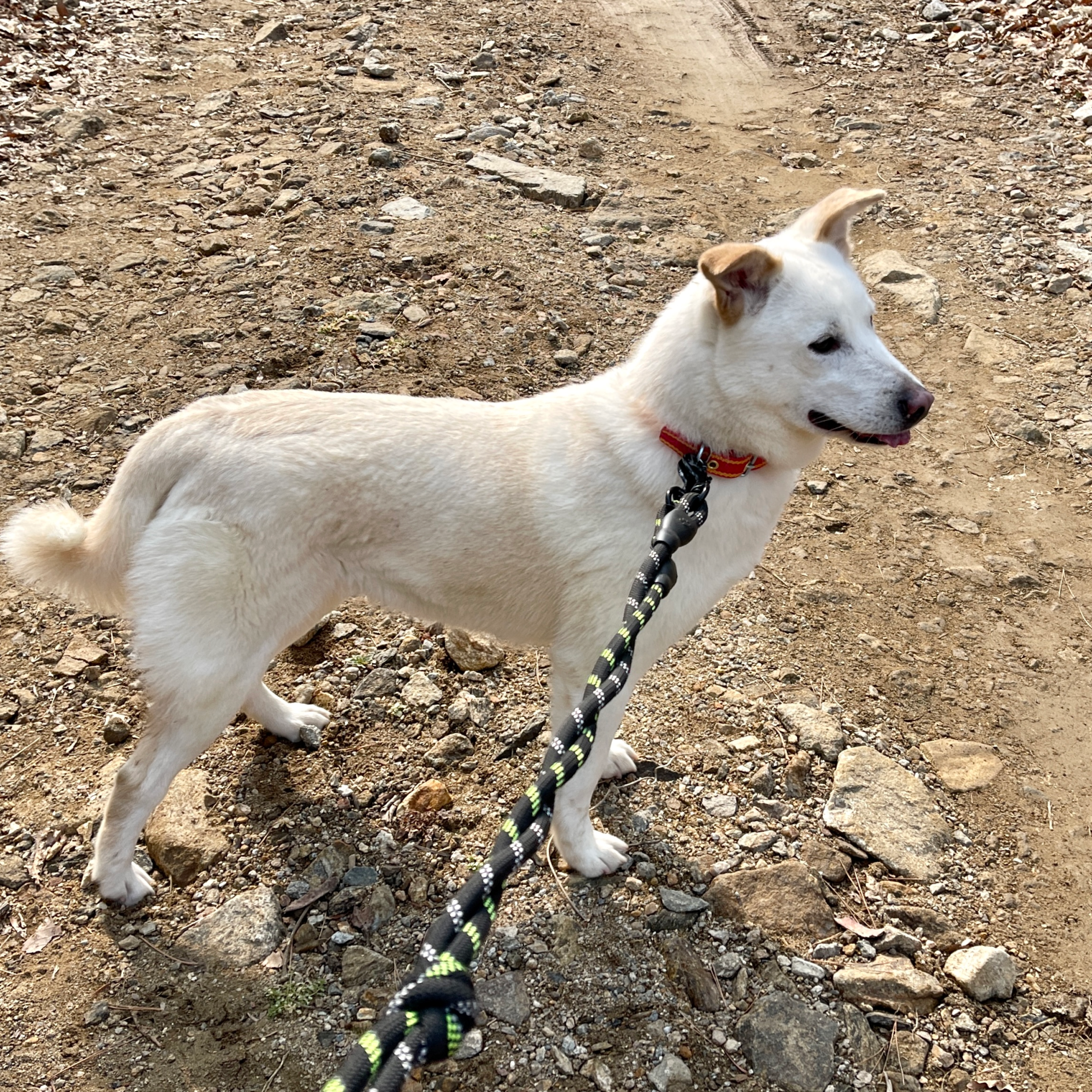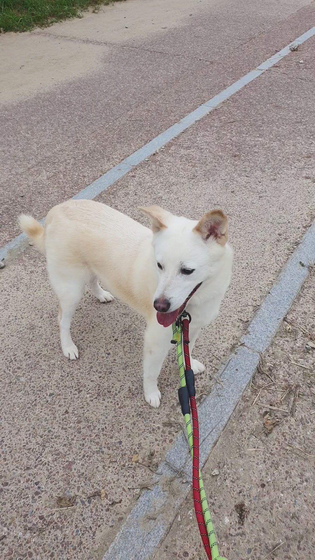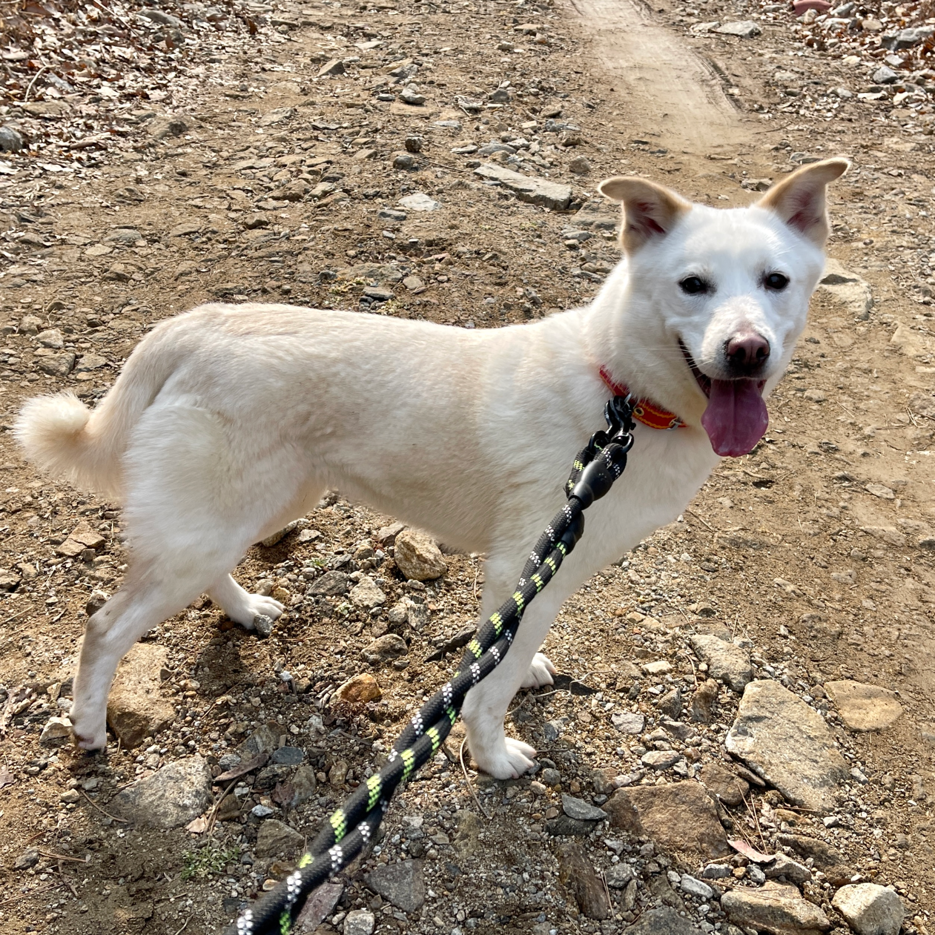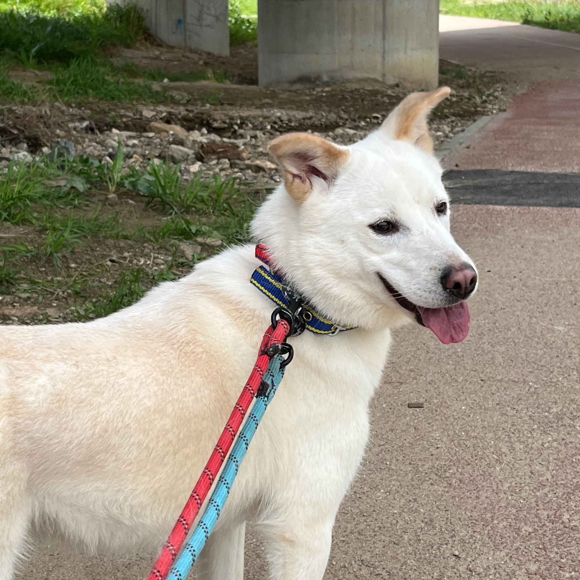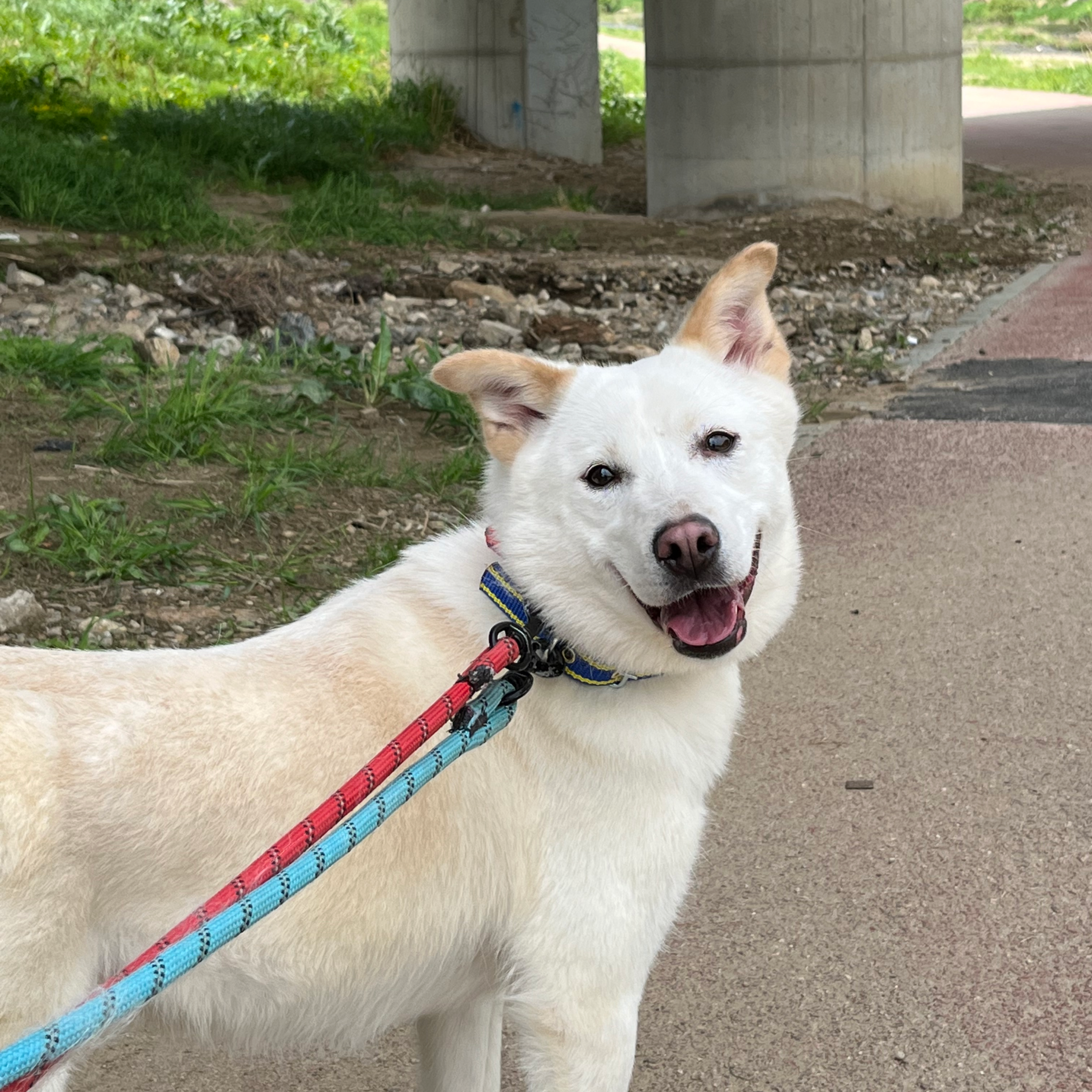 Miso is a 15kg female jindo mix who came to us as a puppy in 2020. Miso is a cute medium sized girlie with legs that are just a tad short, ears that are just a tad floppy, and fluffy white fur as lovely as a fresh coat of snow!
