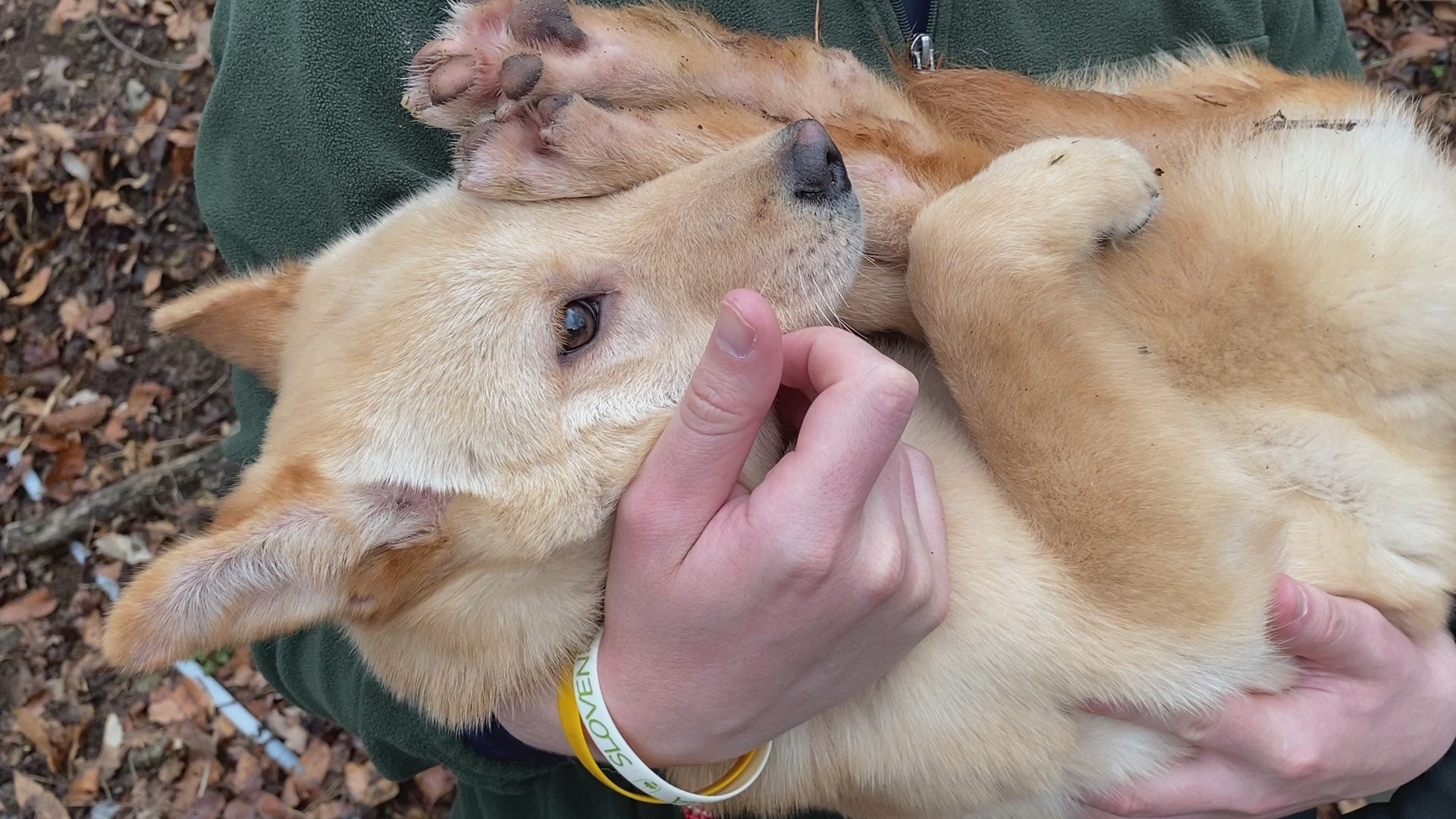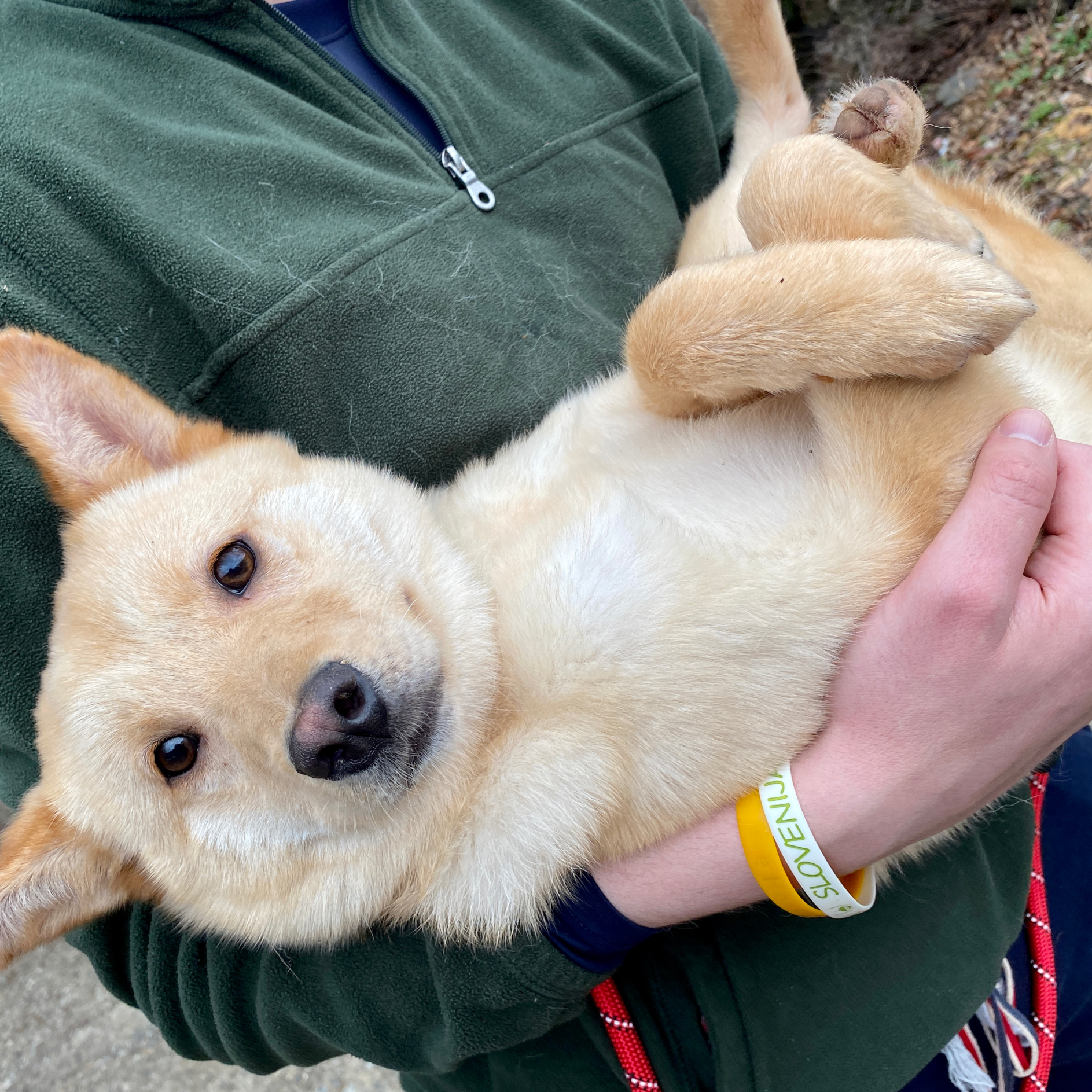 Pebbles has grown into the cutest doe-eyed pointy-eared little lady! Sweet as she is, Pebbles is quite nervous about the world outside the shelter and when meeting new people. Due to such limited experience with going for walks, she is timid in the outside world and she has become famous for her preference to be carried around like a baby rather than walking on her own! Because she becomes a bit more trusting and cuddly with new people after a short time, we believe that Pebbles will blossom into a much more confident doggy once she can be in a stable home where she is shown that her humans are safe and her living space is a fun, happy place to be!