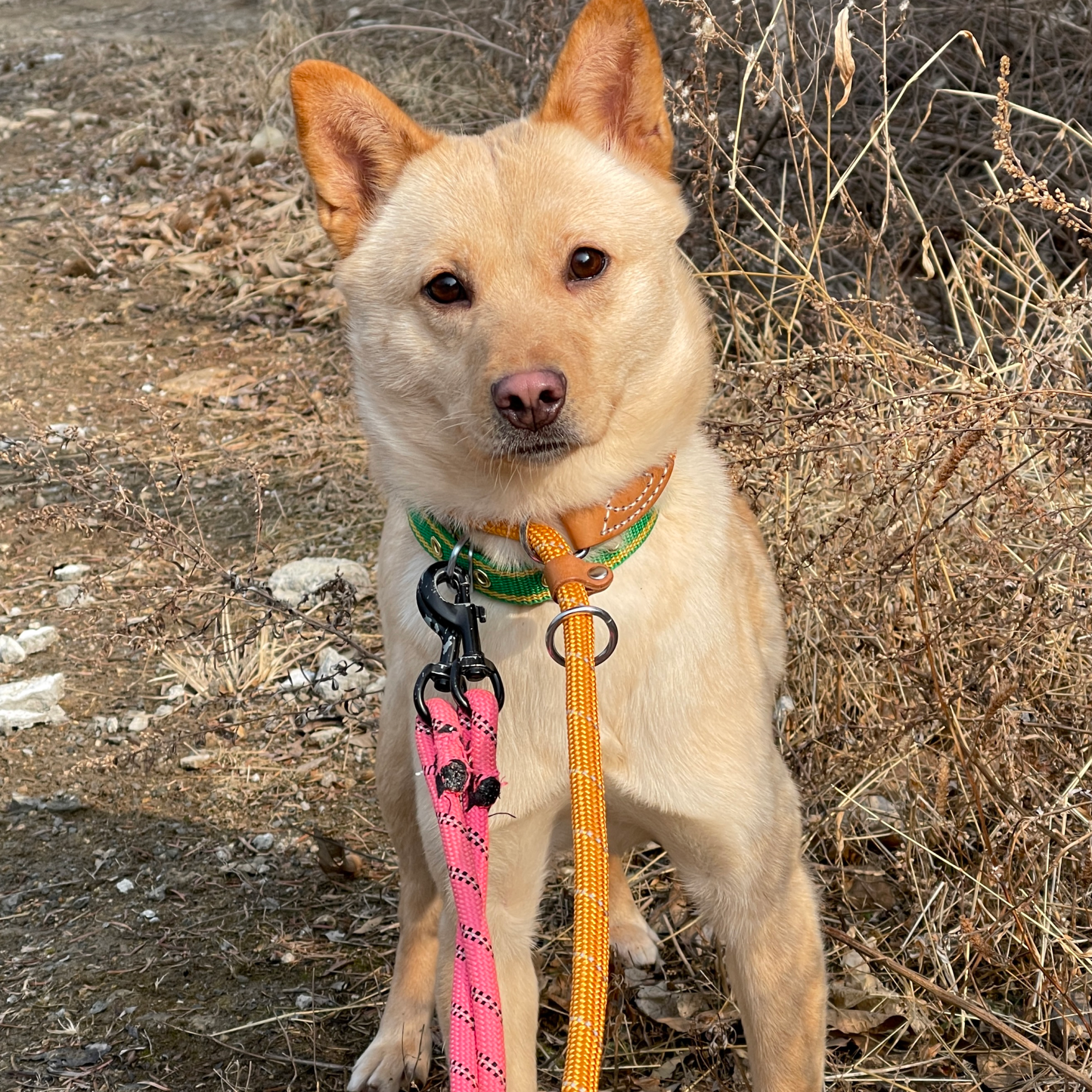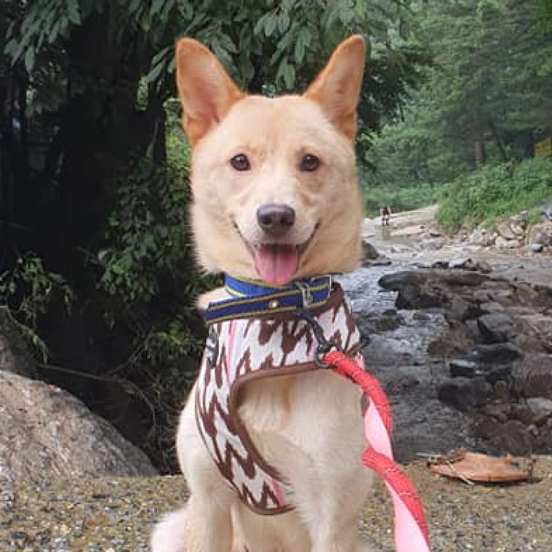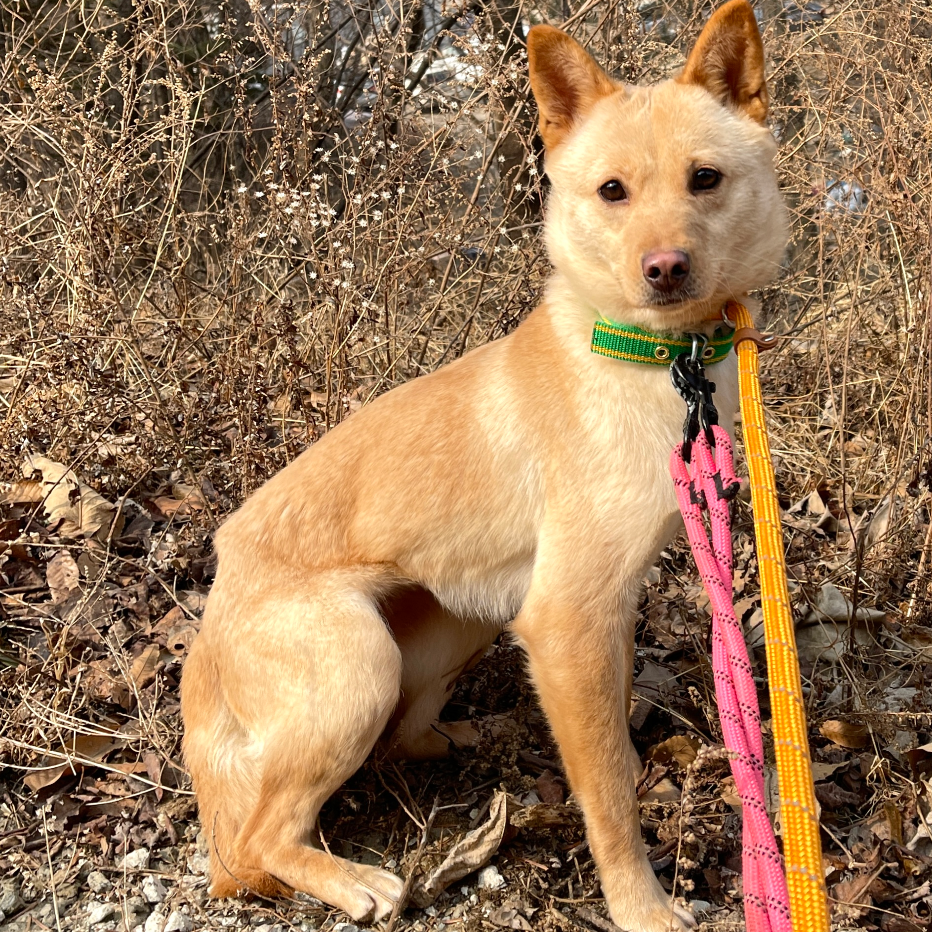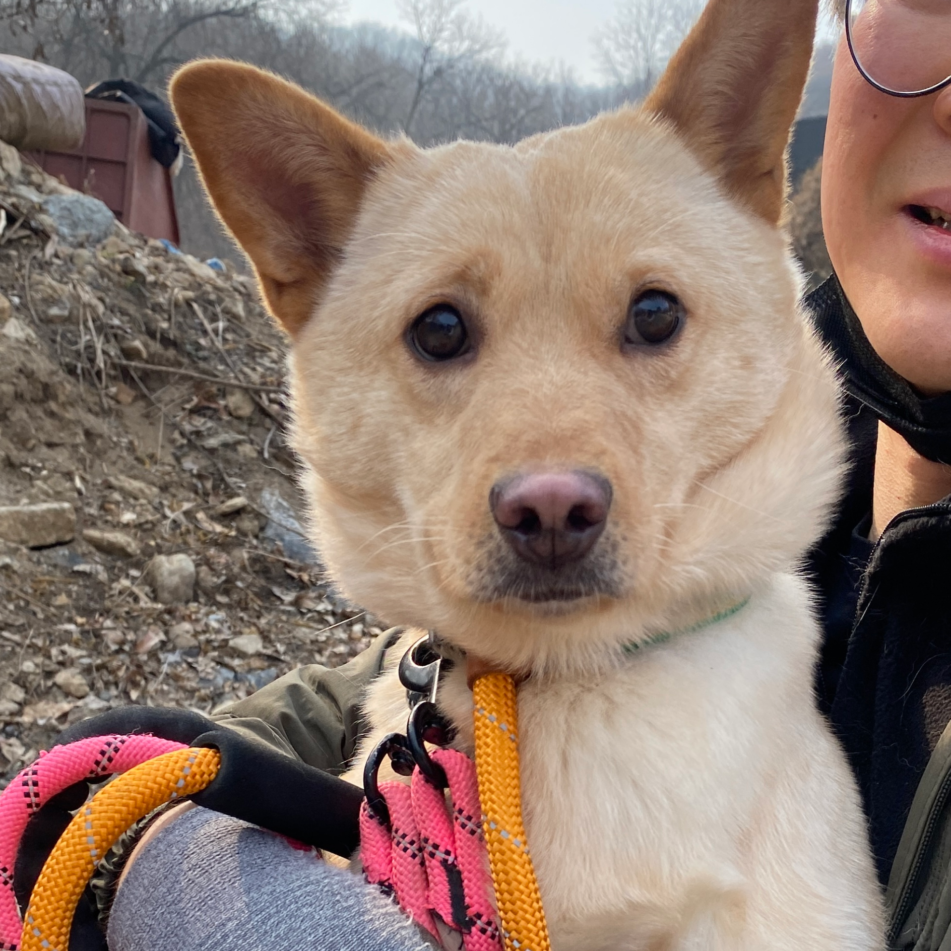 Pebbles is a sweet medium/small jindo mixed breed girl who arrived at our shelter with her two other siblings, Bambam and Barney. The three of them were found on the side of the streets last year roaming around by themselves without anyone or mother in sight. Pebbles has been growing up at the shelter with her two brothers, and she also gets along well with the other puppies and dogs who she shares a kennel with.